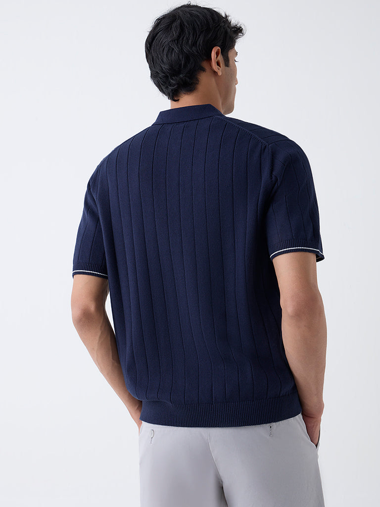 Ascot reimagines casual dressing with this navy polo t-shirt, spun from a soft cotton-blend fabric and finished with a sleek quarter-zip collar for a tailored touch. Its ribbed texture and short sleeves create a streamlined profile.