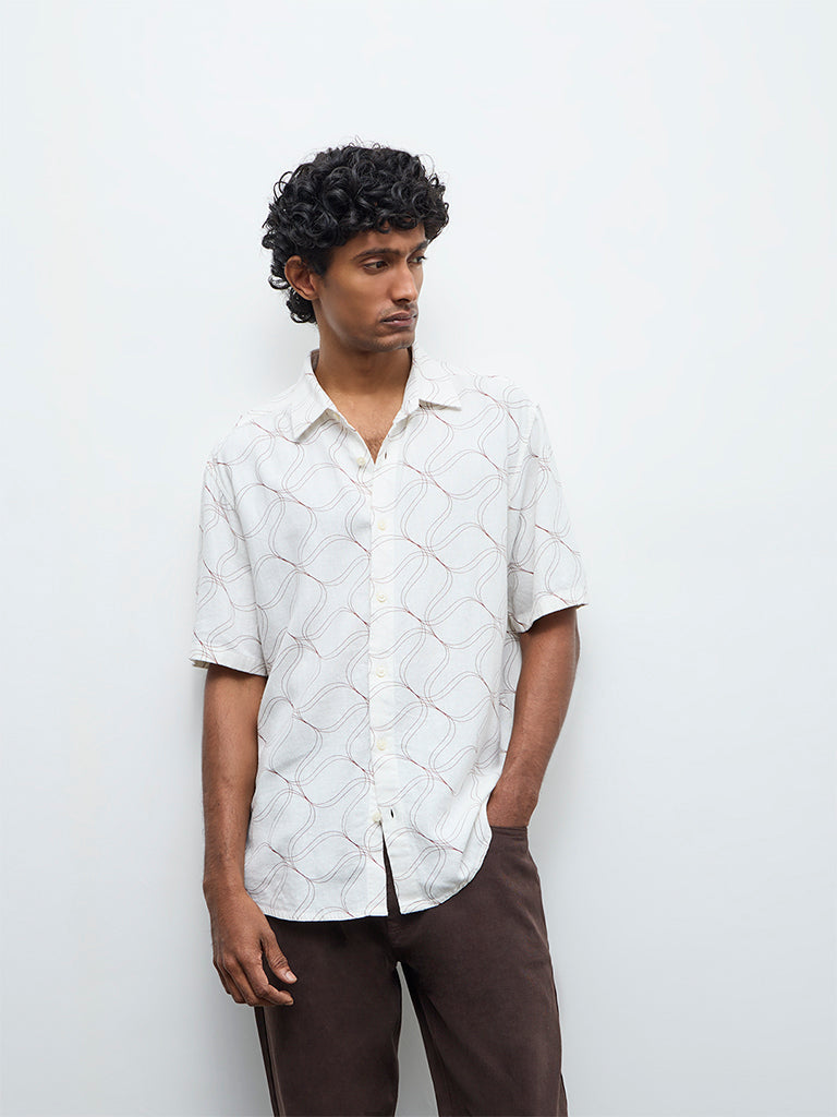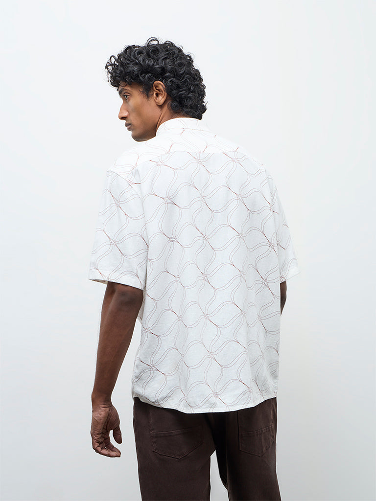Ascot Off White Abstract Printed Relaxed-Fit Shirt