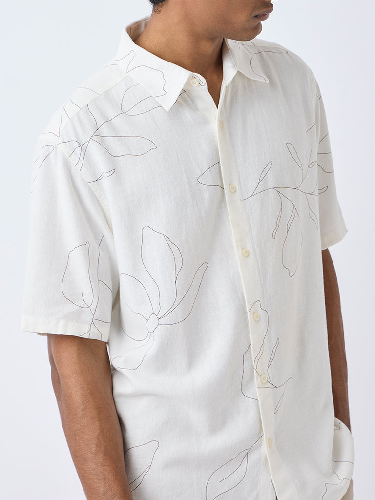 Ascot Off-White Floral Design Relaxed-Fit Shirt