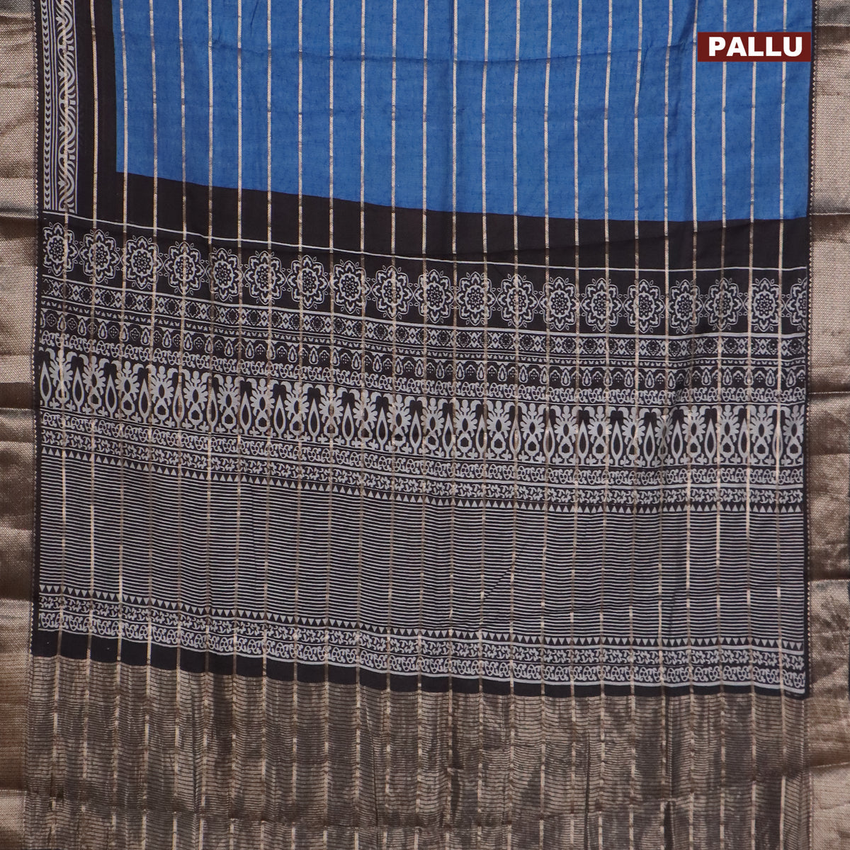 Assam partly silk saree blue and black with digital prints & zari weaves and zari woven border