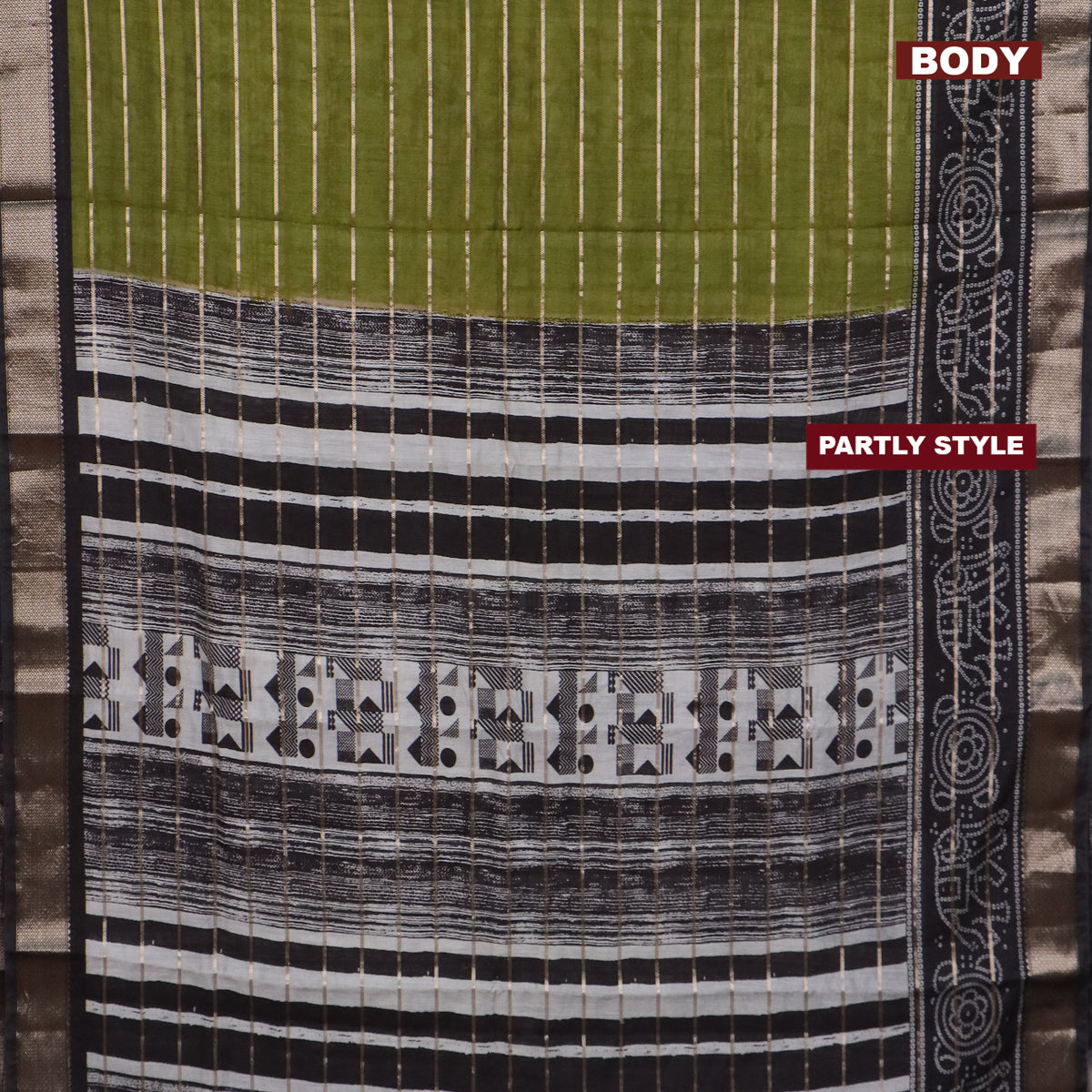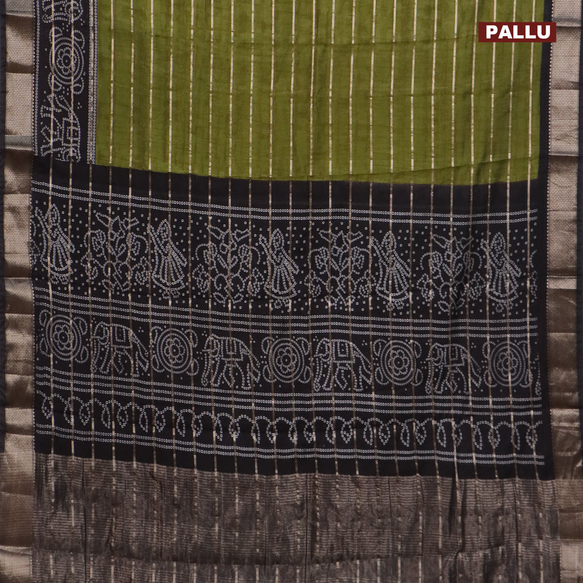 Assam partly silk saree mehendi green and black with digital prints & zari weaves and zari woven border