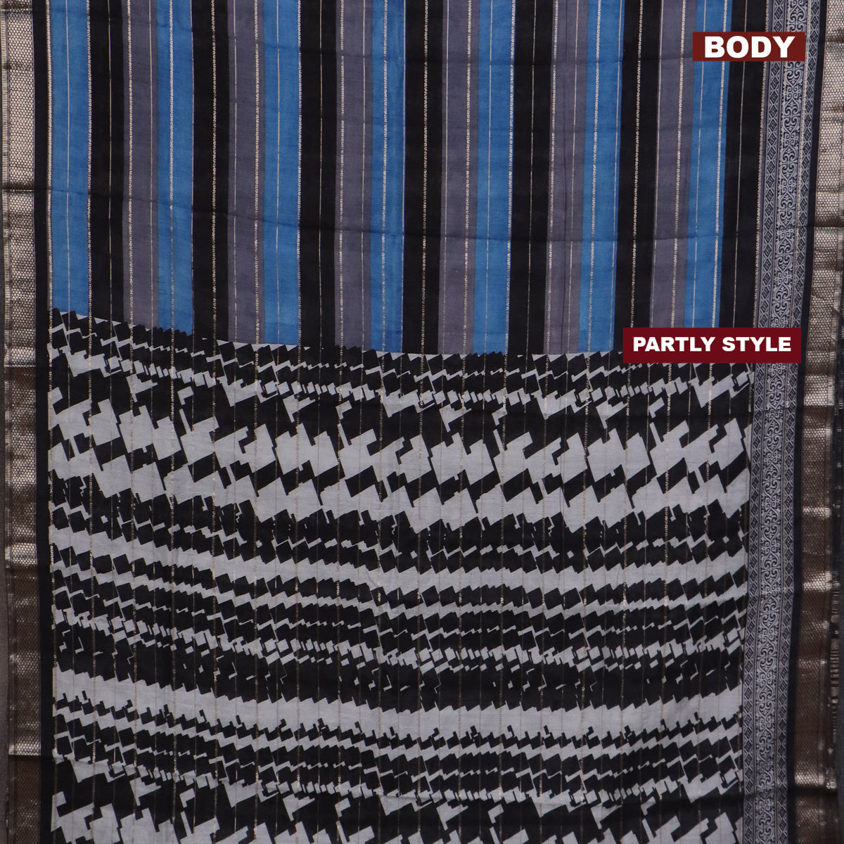 Assam partly silk saree multi colour and black with digital prints & zari weaves and zari woven border