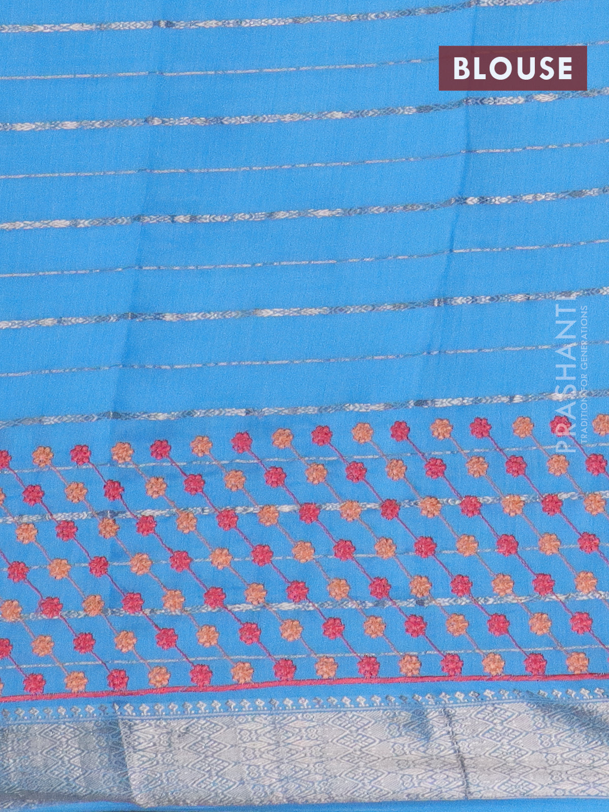 Assam silk saree blue shade with allover zari weaves & floral embroidery work buttas and zari woven border