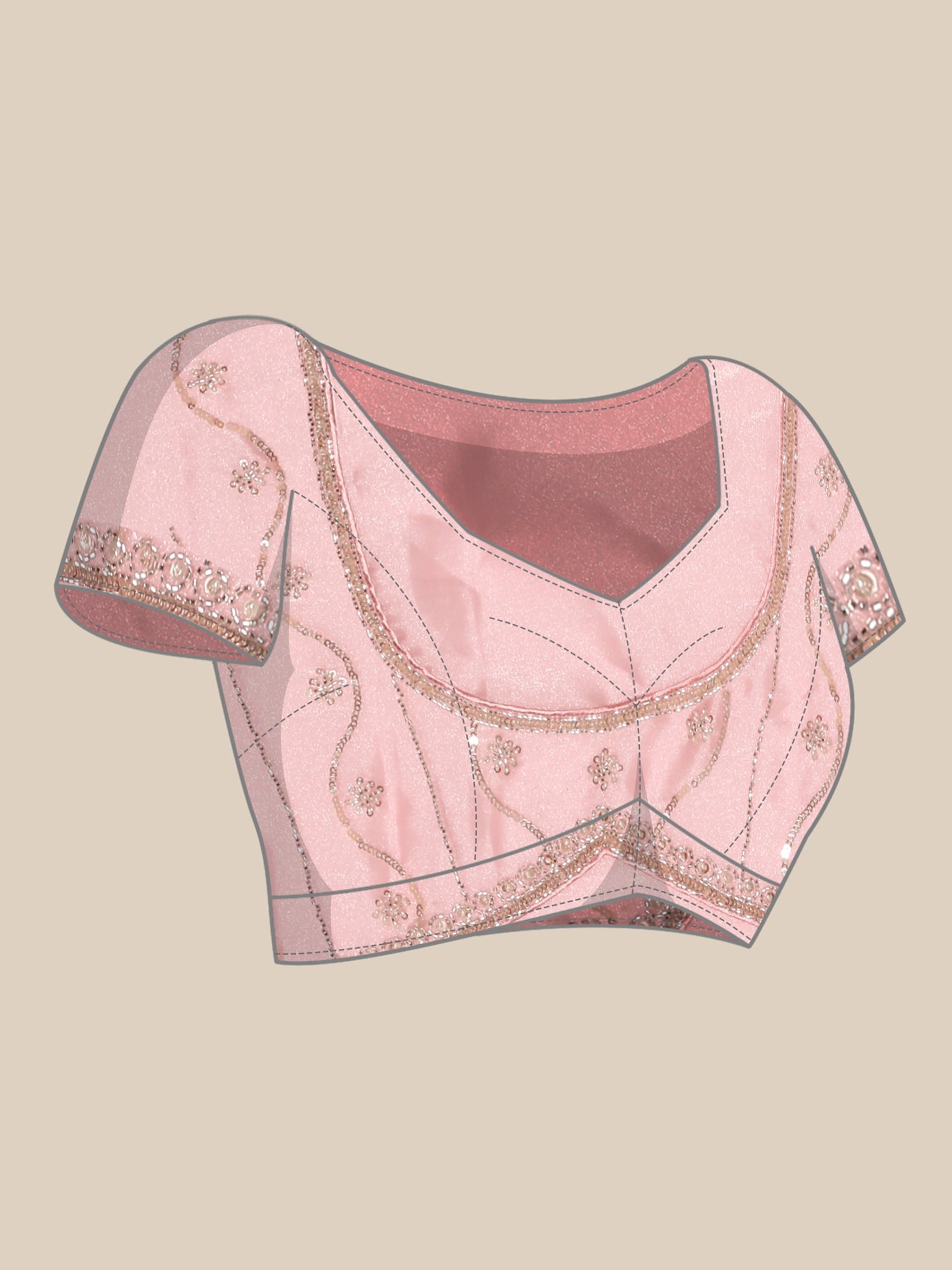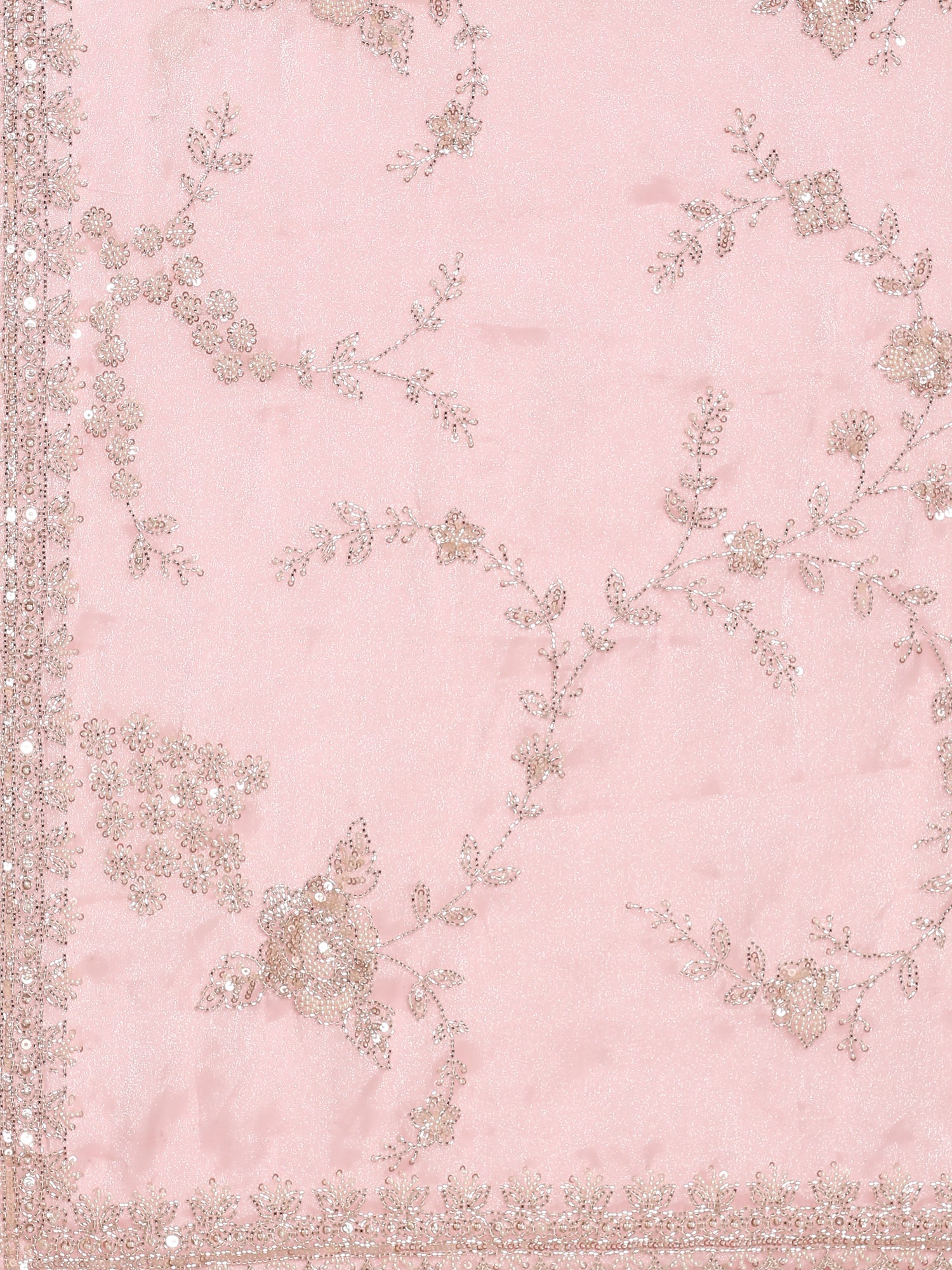 Elevate your ethnic wardrobe with this baby pink satin saree featuring intricate zardozi hand embroidery. The rich satin fabric offers a smooth, lustrous finish while the handcrafted zardozi detailing adds an exquisite touch of artistry and elegance. Perfect for formal occasions, this saree combines traditional craftsmanship with luxurious texture, ensuring a graceful and sophisticated appearance.