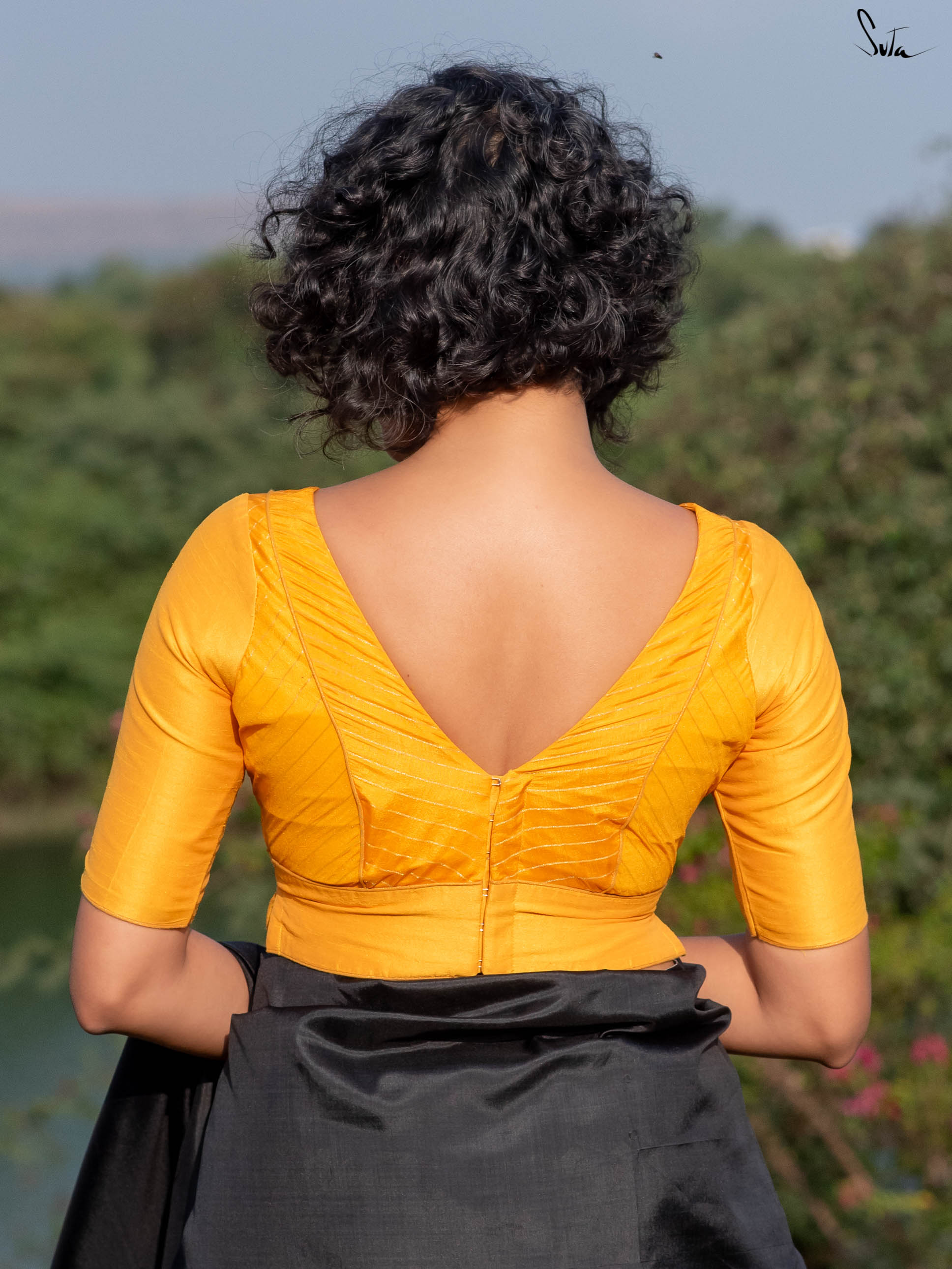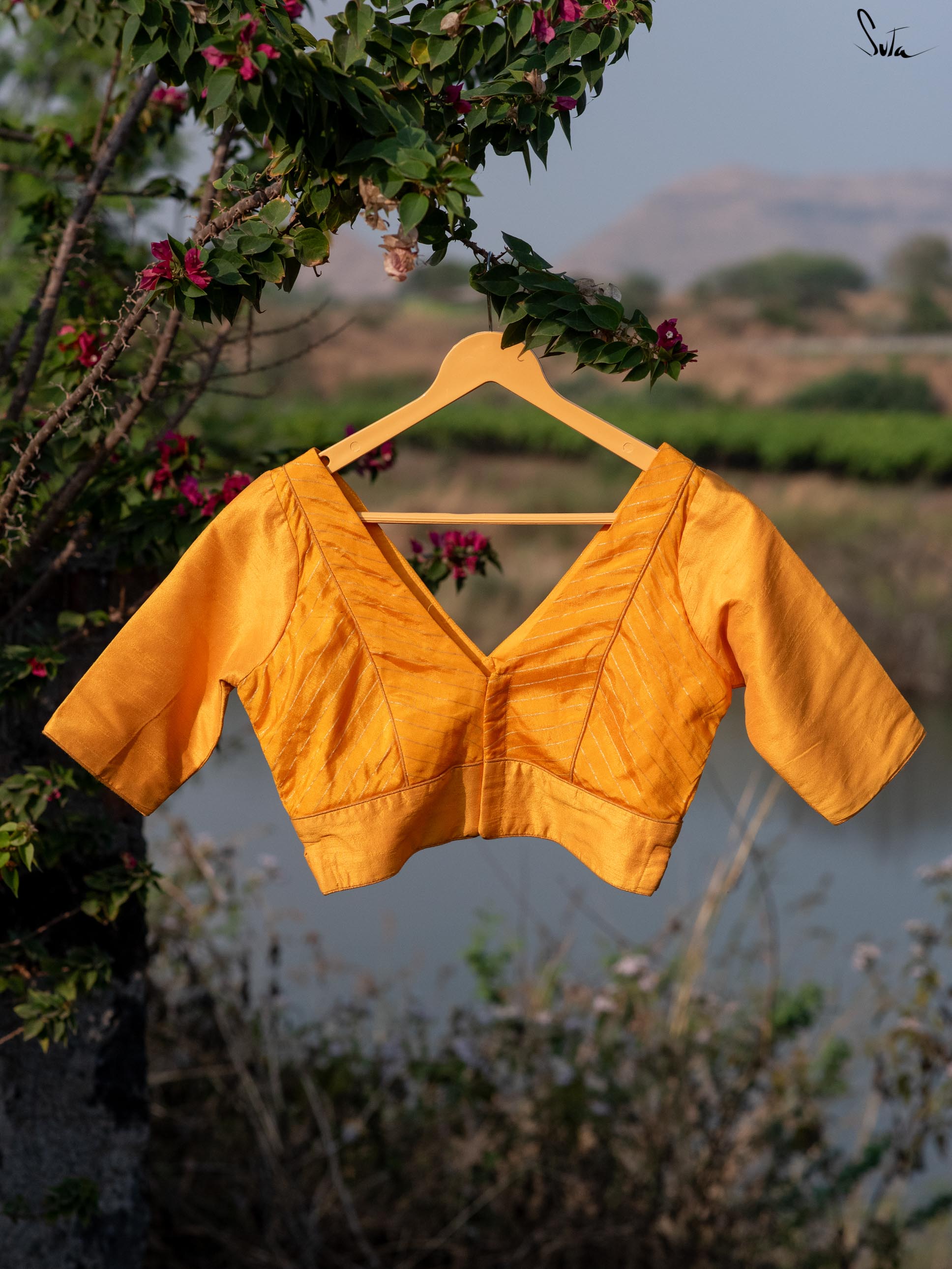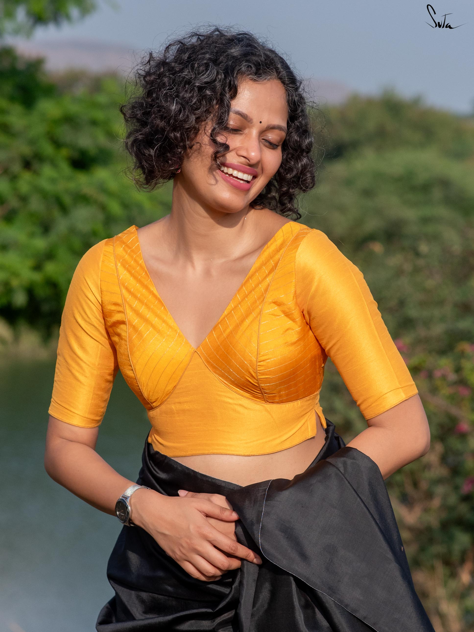 Welcome the sunshine into your wardrobe with our 'Banana Blast' blouse. Crafted from luxurious cotton silk, this yellow beauty features a quirky V-neck design, elbow sleeves, and a comforting back button opening. Drawing inspiration from the beautiful, sunny spring mornings, this blouse revitalizes your fashion with its blooming aura, spreading joy and warmth wherever you go.