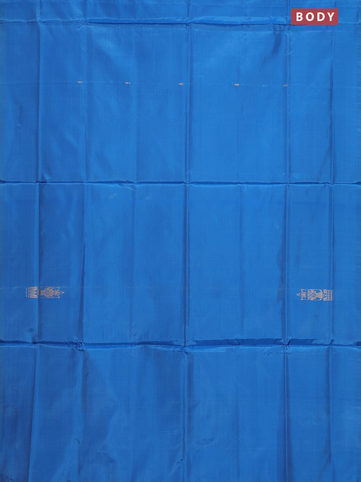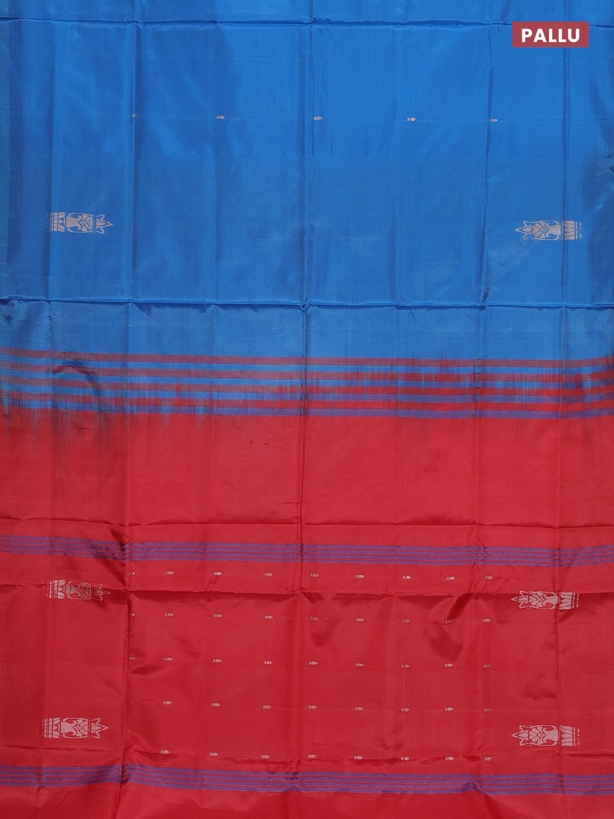 Banana pith saree blue and red with thread woven buttas in borderless style