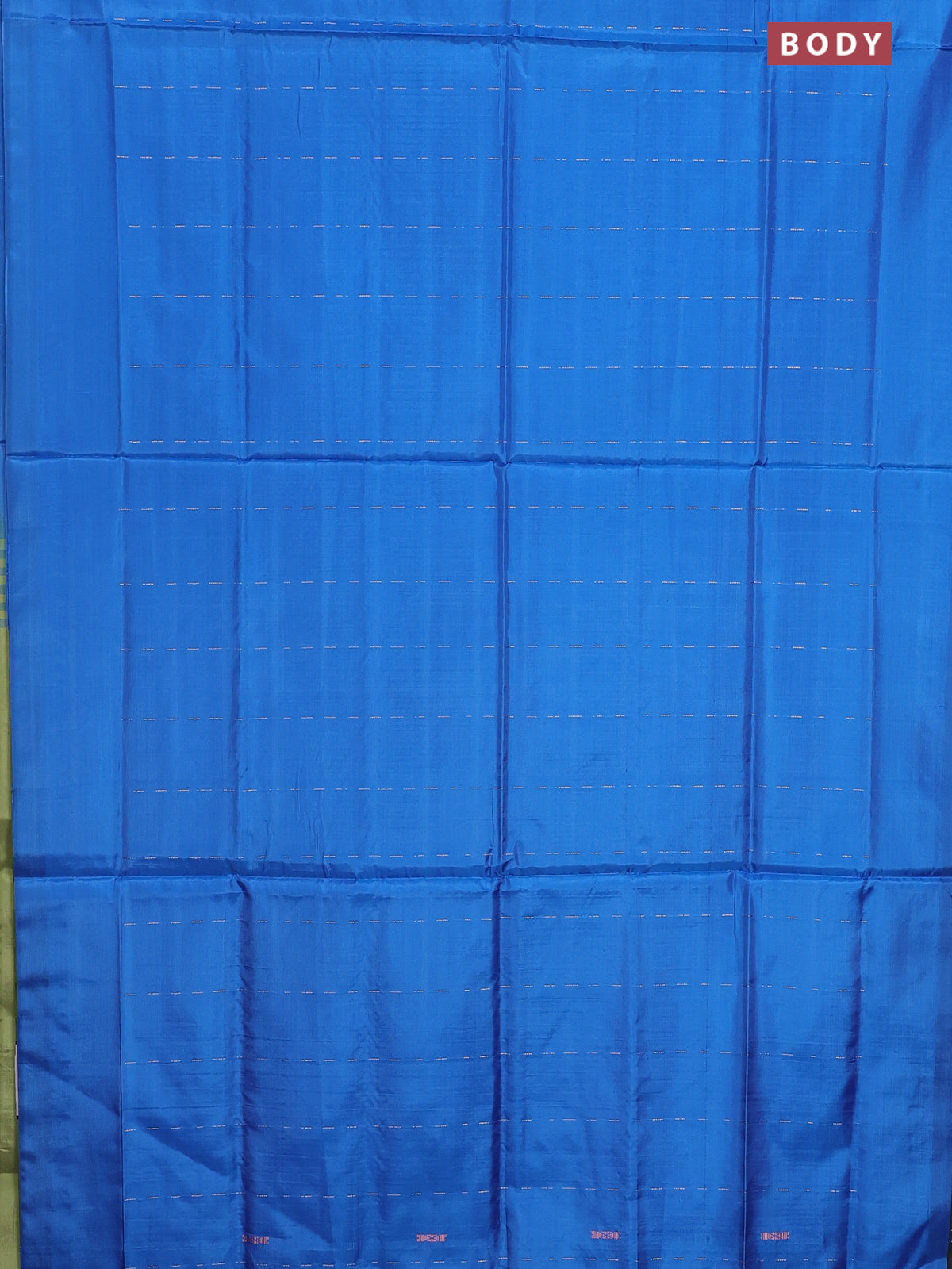 Banana pith saree cs blue and pista green with allover thread woven butta weaves in borderless style