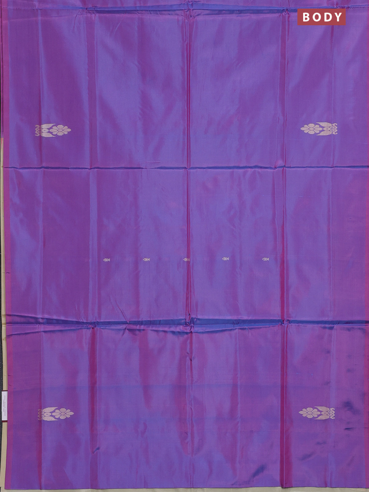 Banana pith saree dual shade of purple and cream with thread woven buttas in borderless style