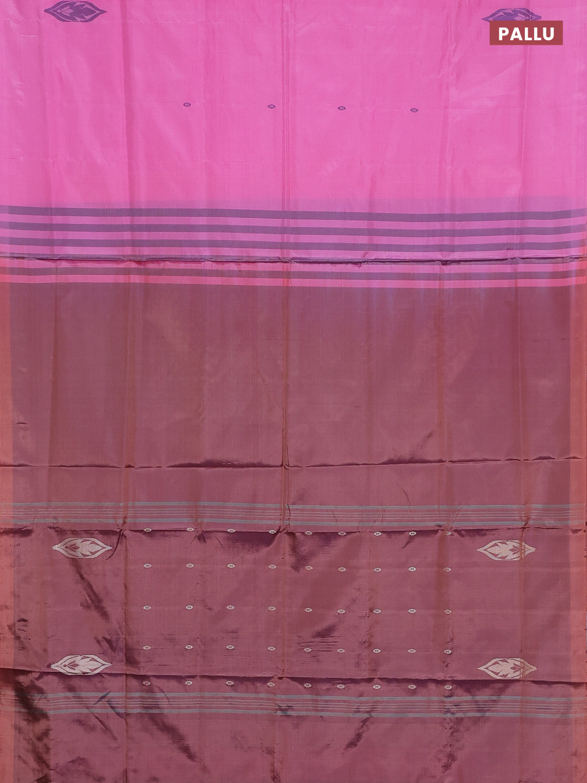 Banana pith saree light pink and rust shade with thread woven buttas in borderless style