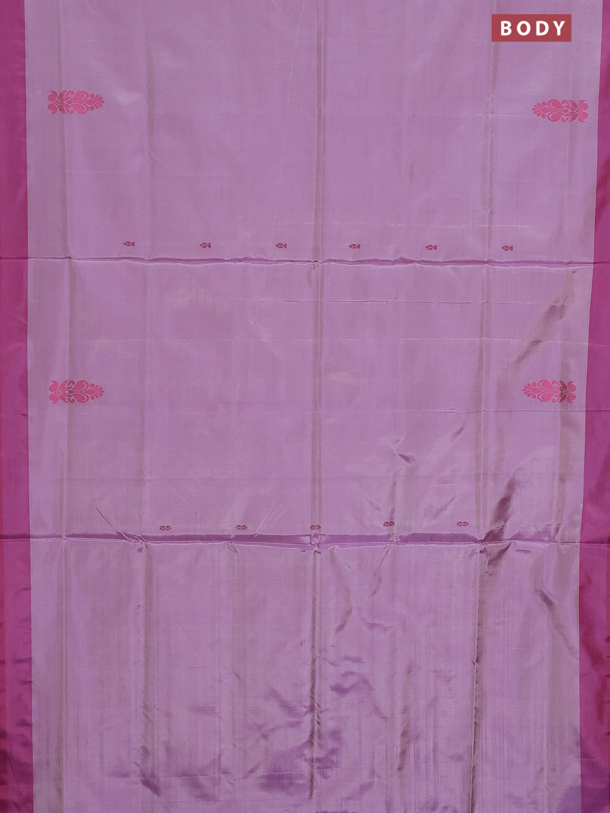 Banana pith saree mild lavender and reddish pink with thread woven buttas and contrast border