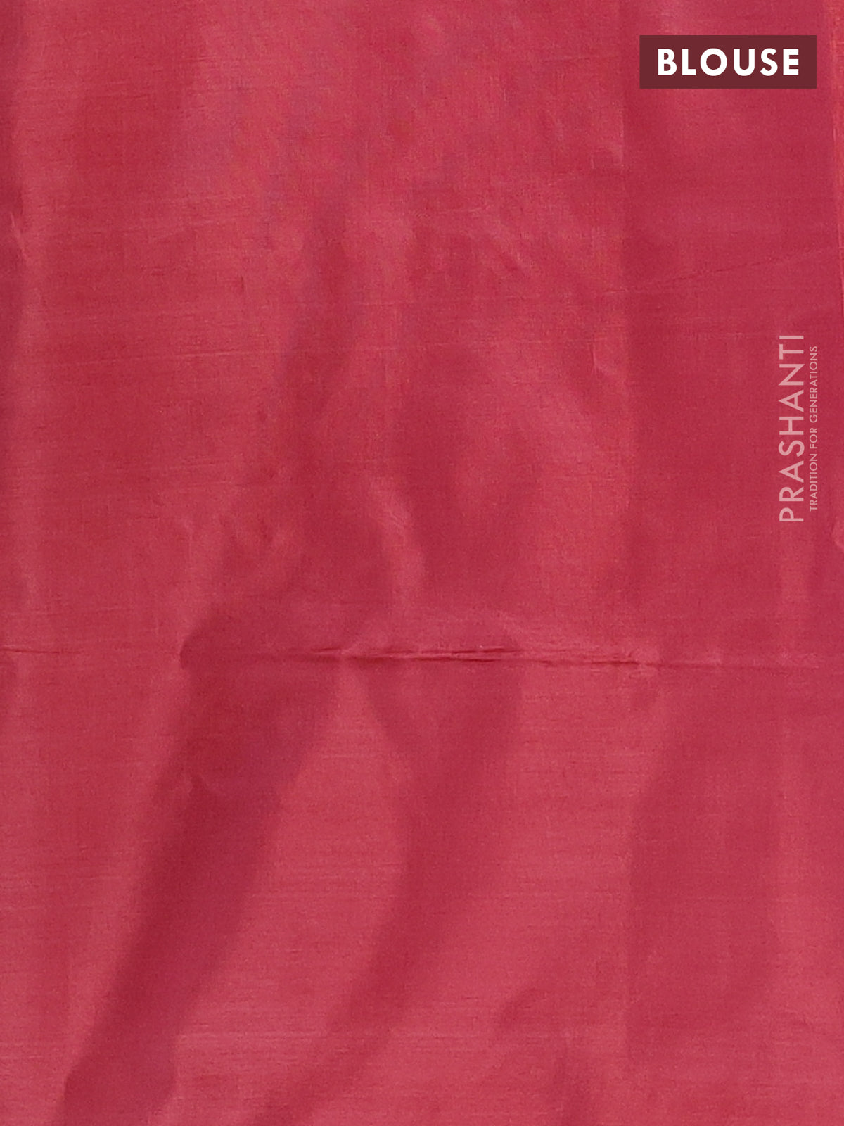 Banana pith saree teal green shade and maroon with thread woven buttas in borderless style