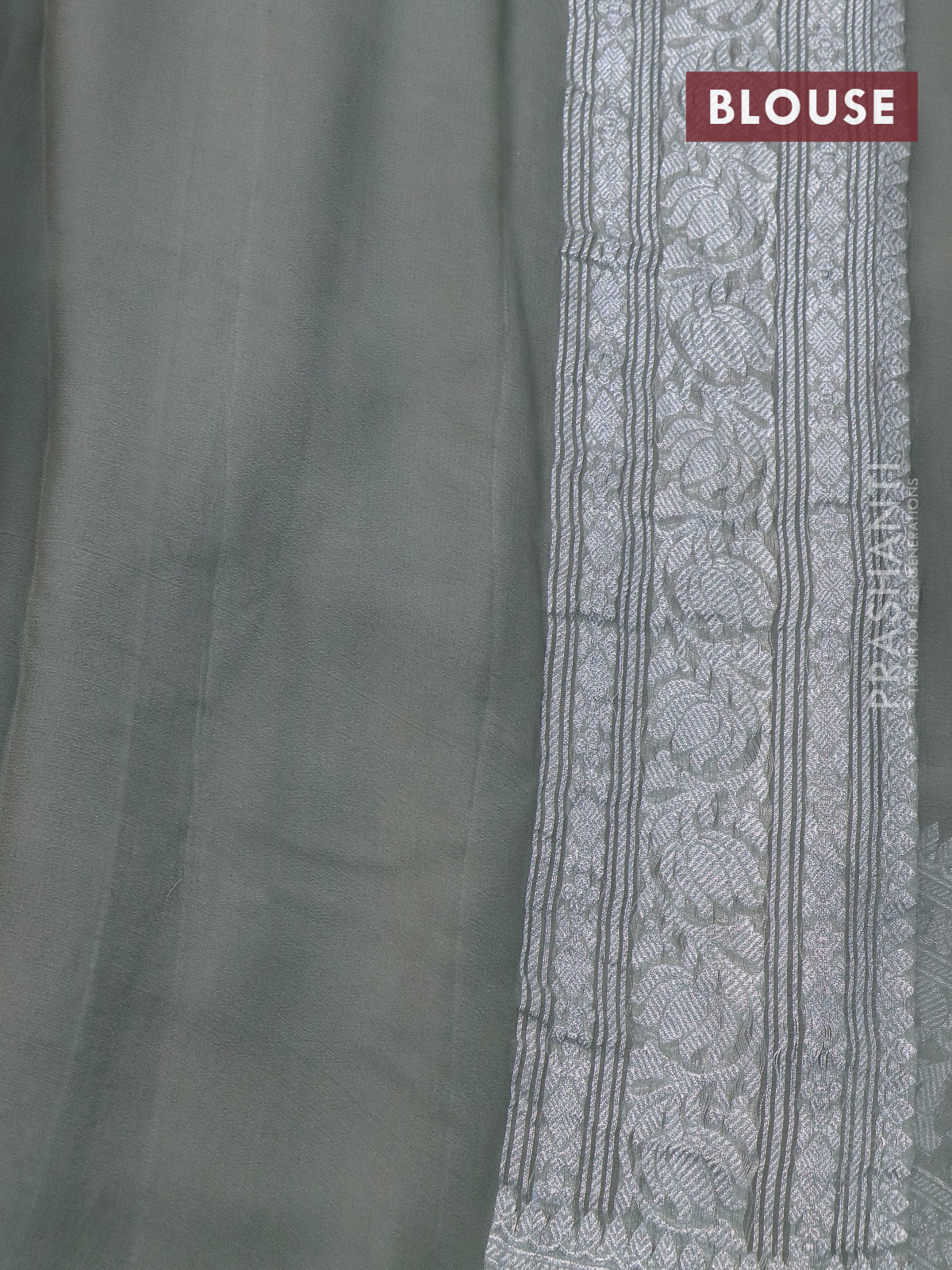 Banarasi chiffon saree grey shade with silver zari woven buttas and silver zari woven border