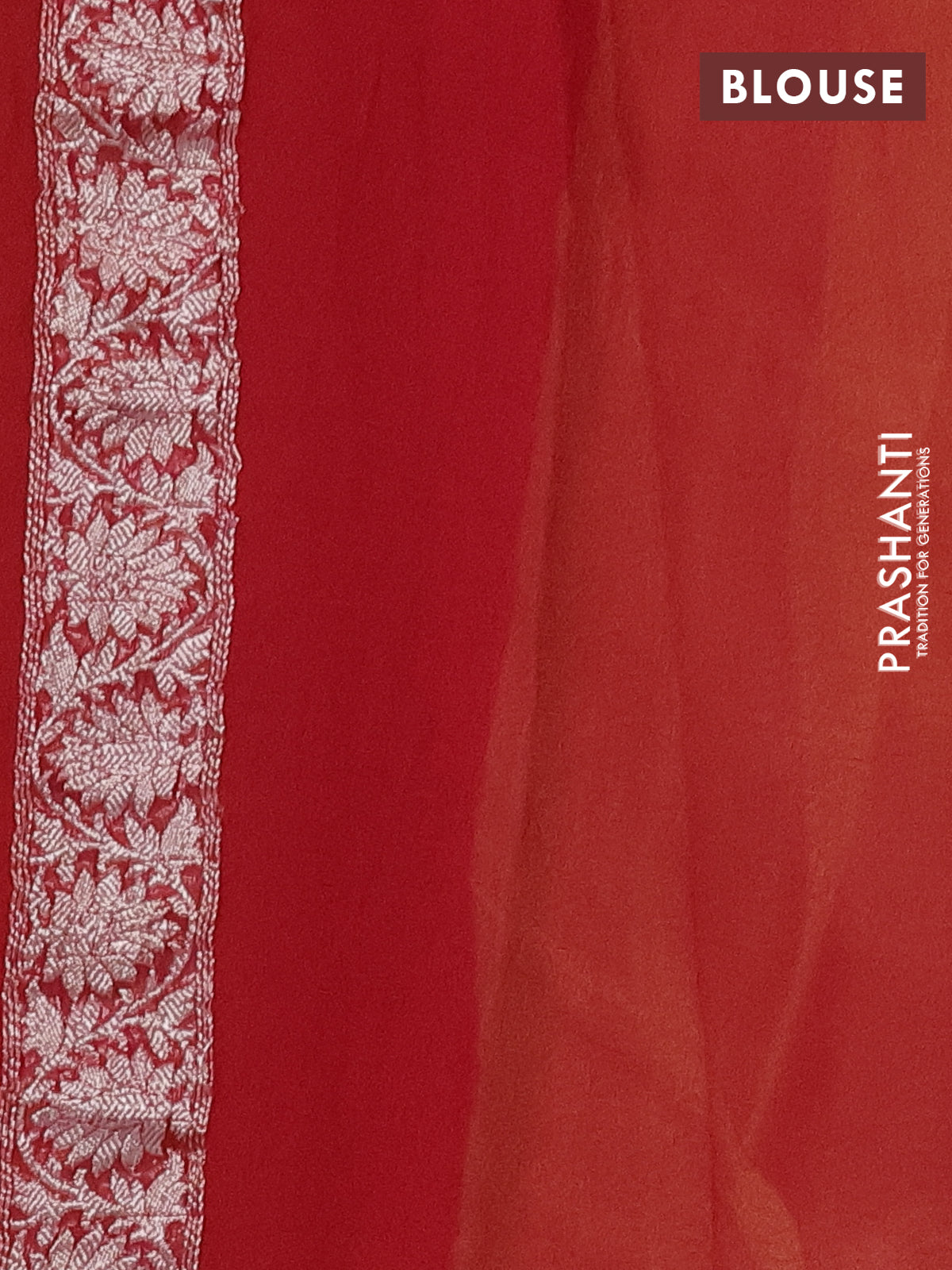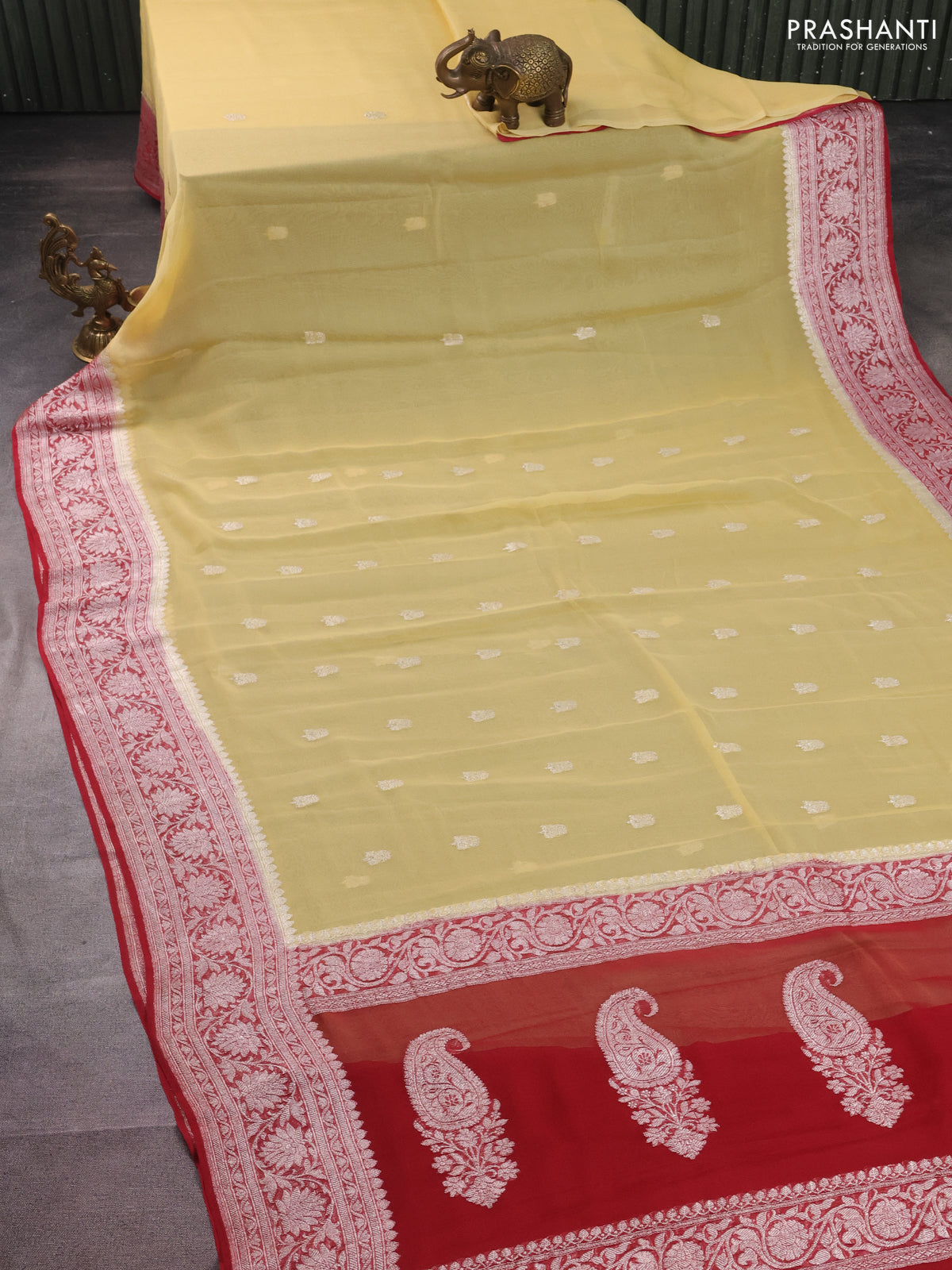 Banarasi chiffon silk saree pale yellow and maroon shade with silver zari woven buttas and silver zari woven border