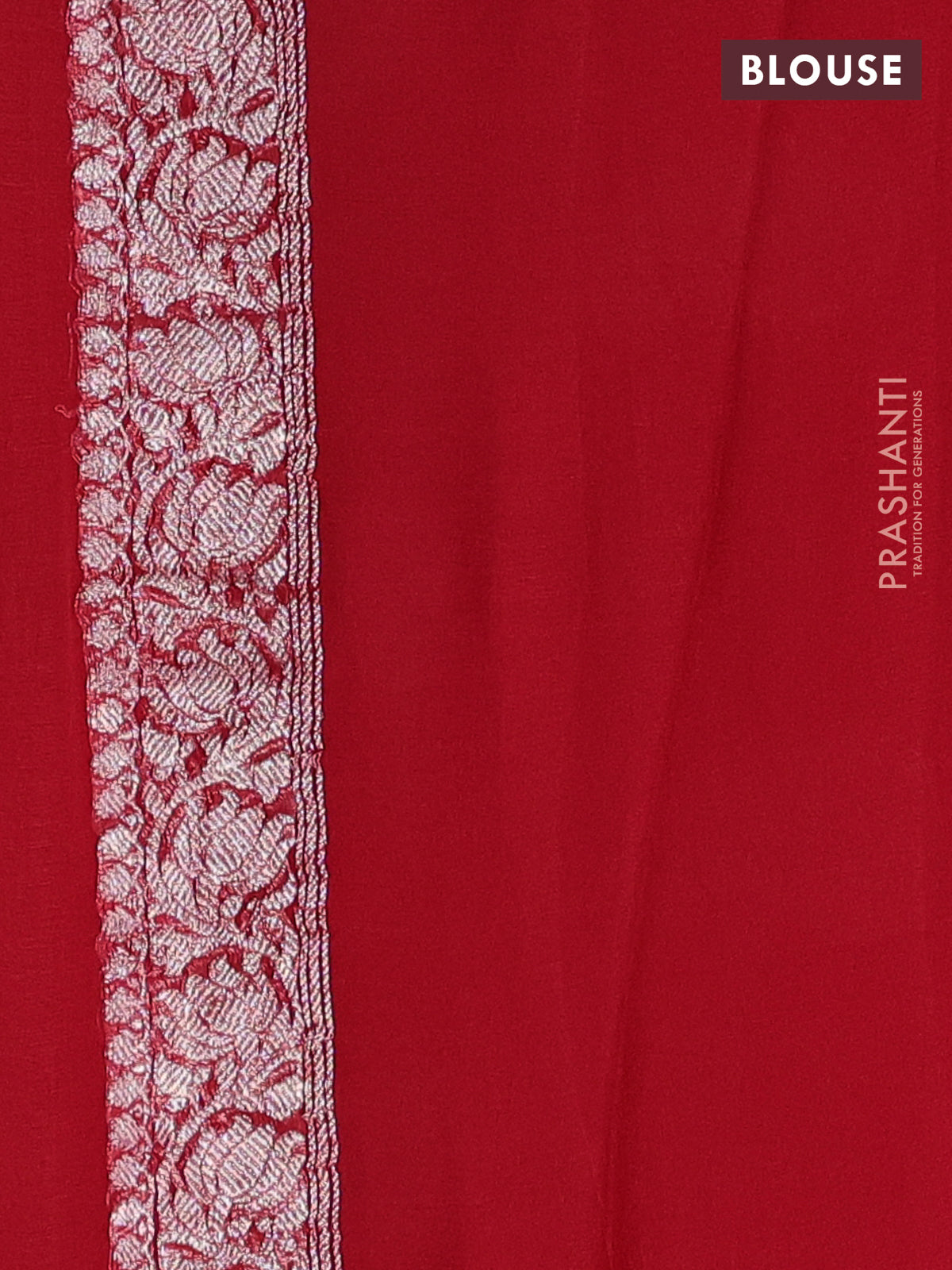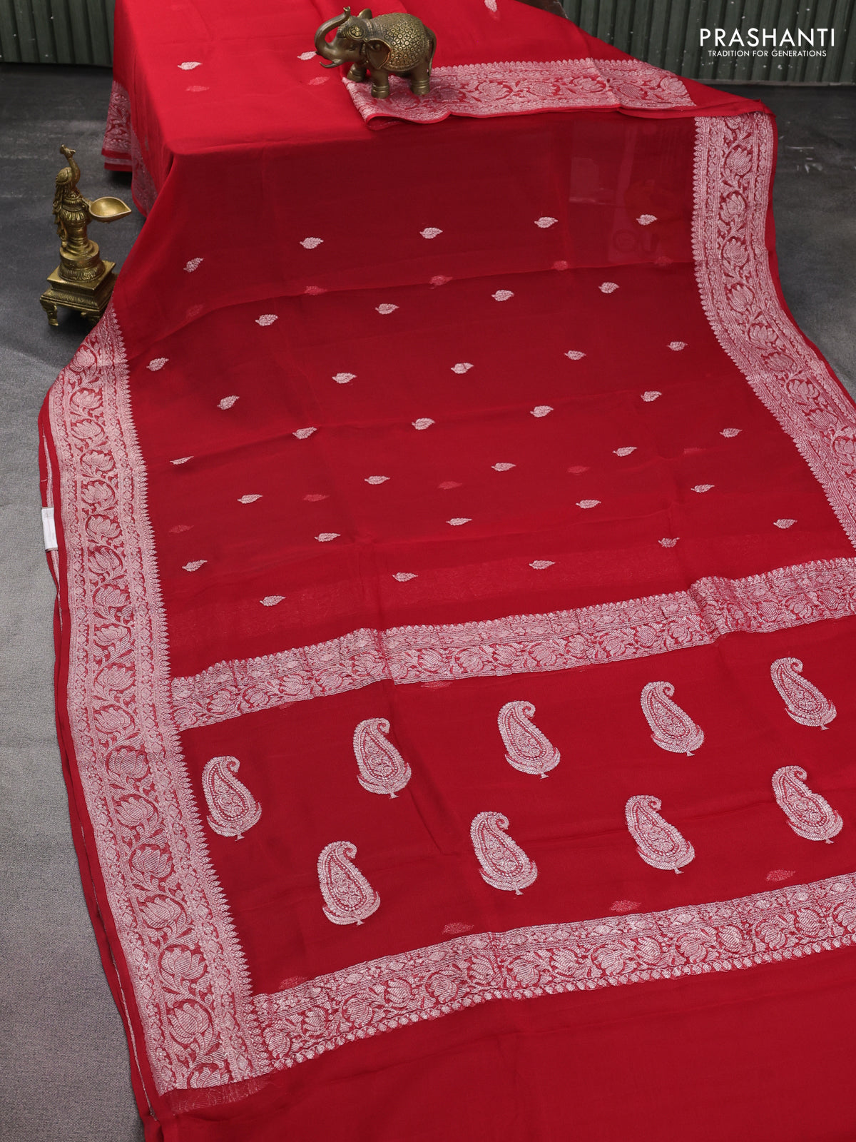 Banarasi chiffon silk saree red with silver zari woven buttas and floral silver zari woven border