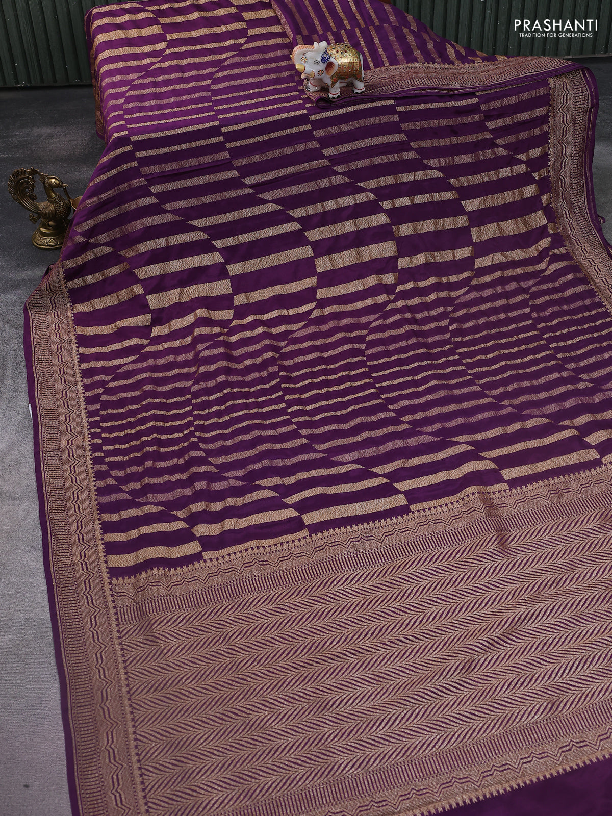 Banarasi crepe saree deep purple with allover geometric weaves and woven border