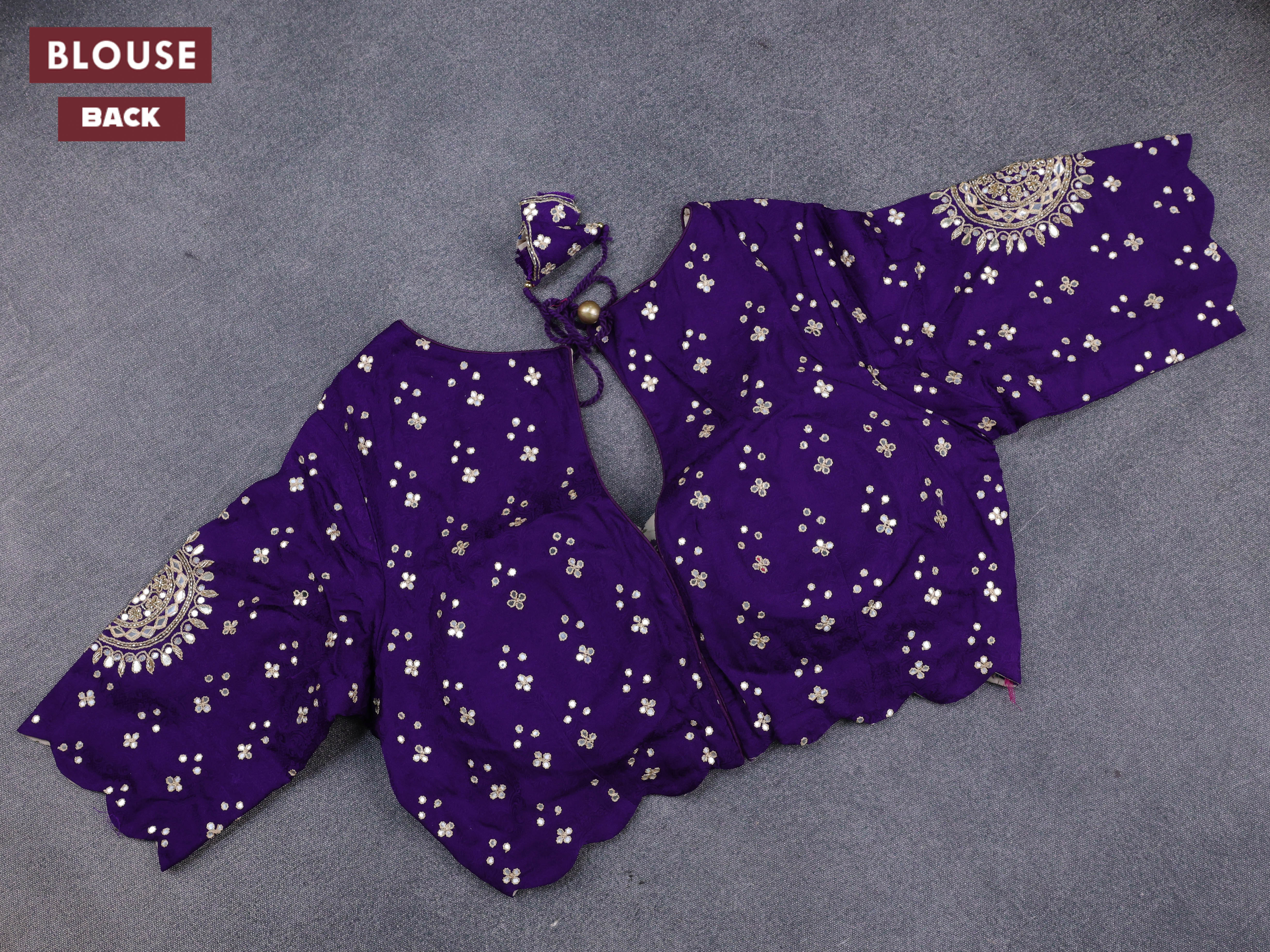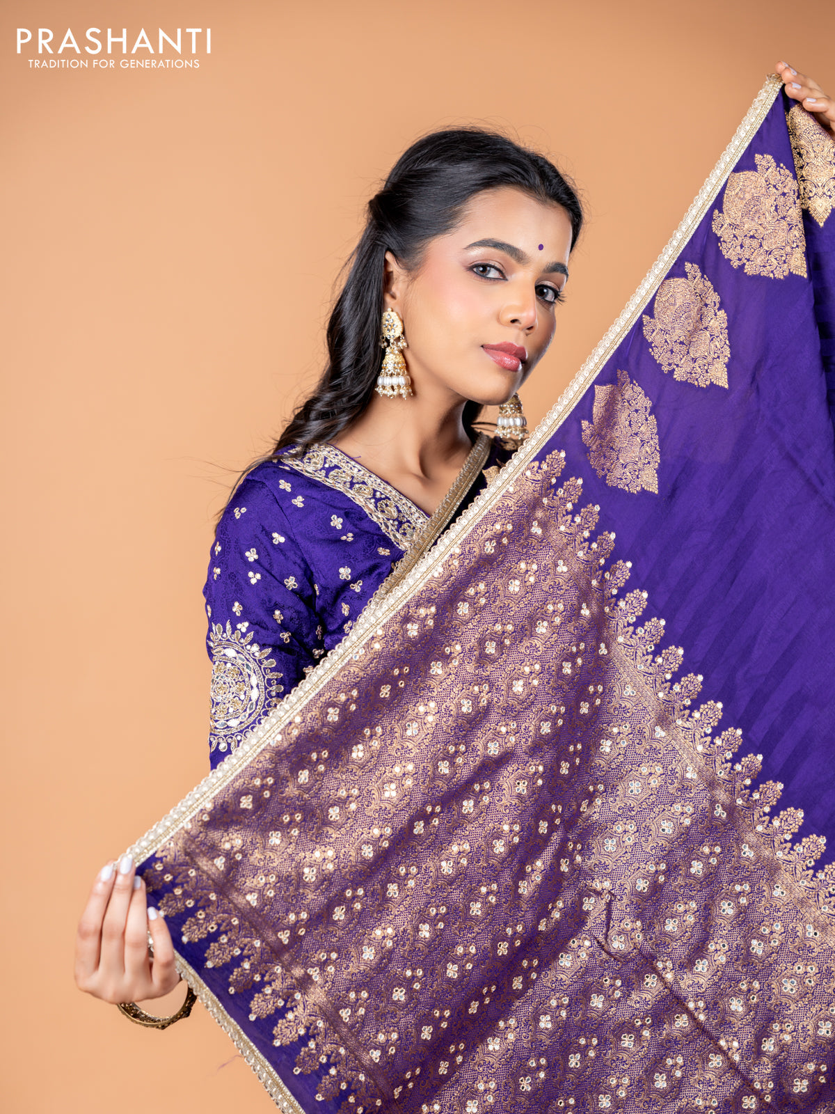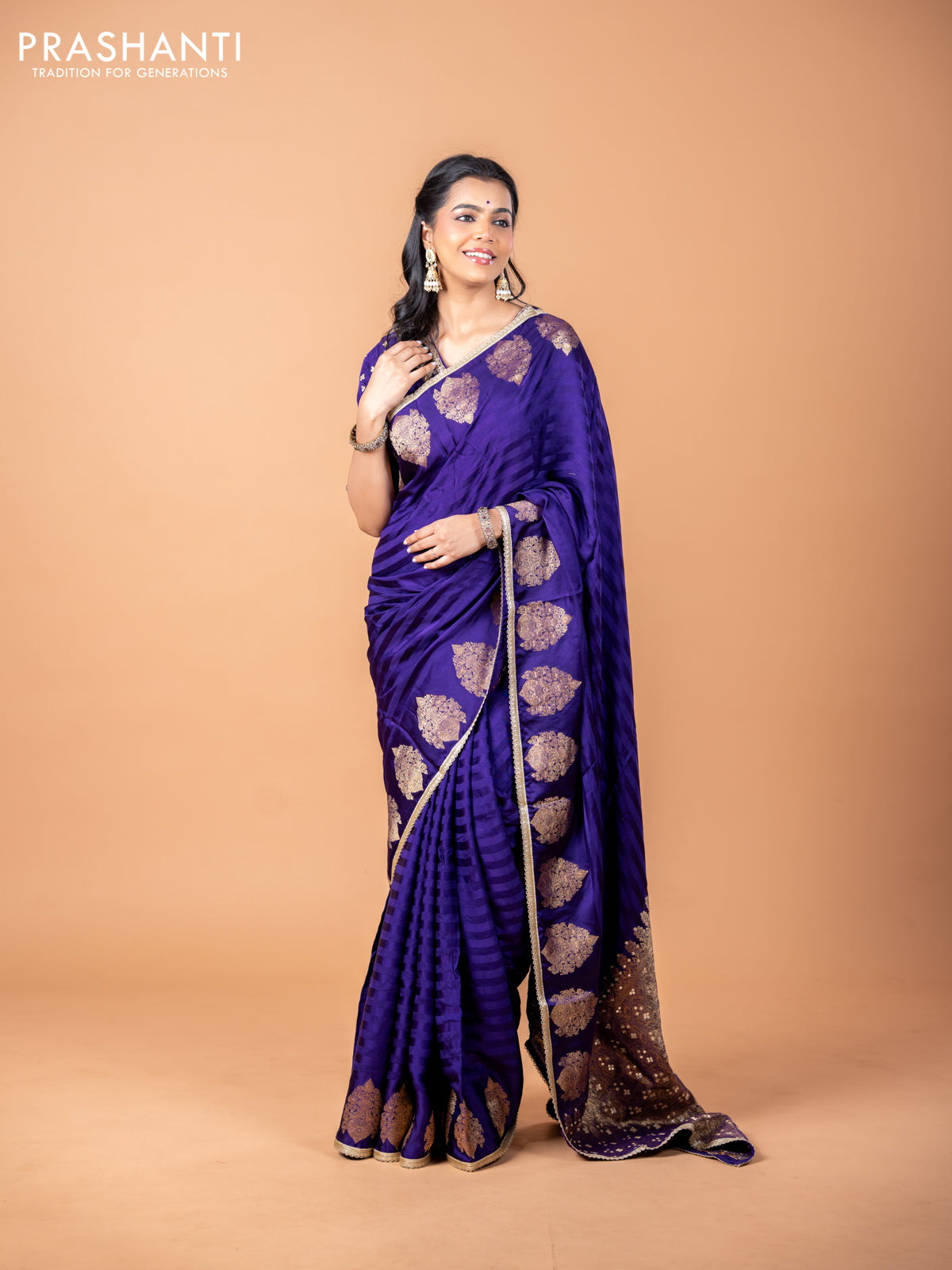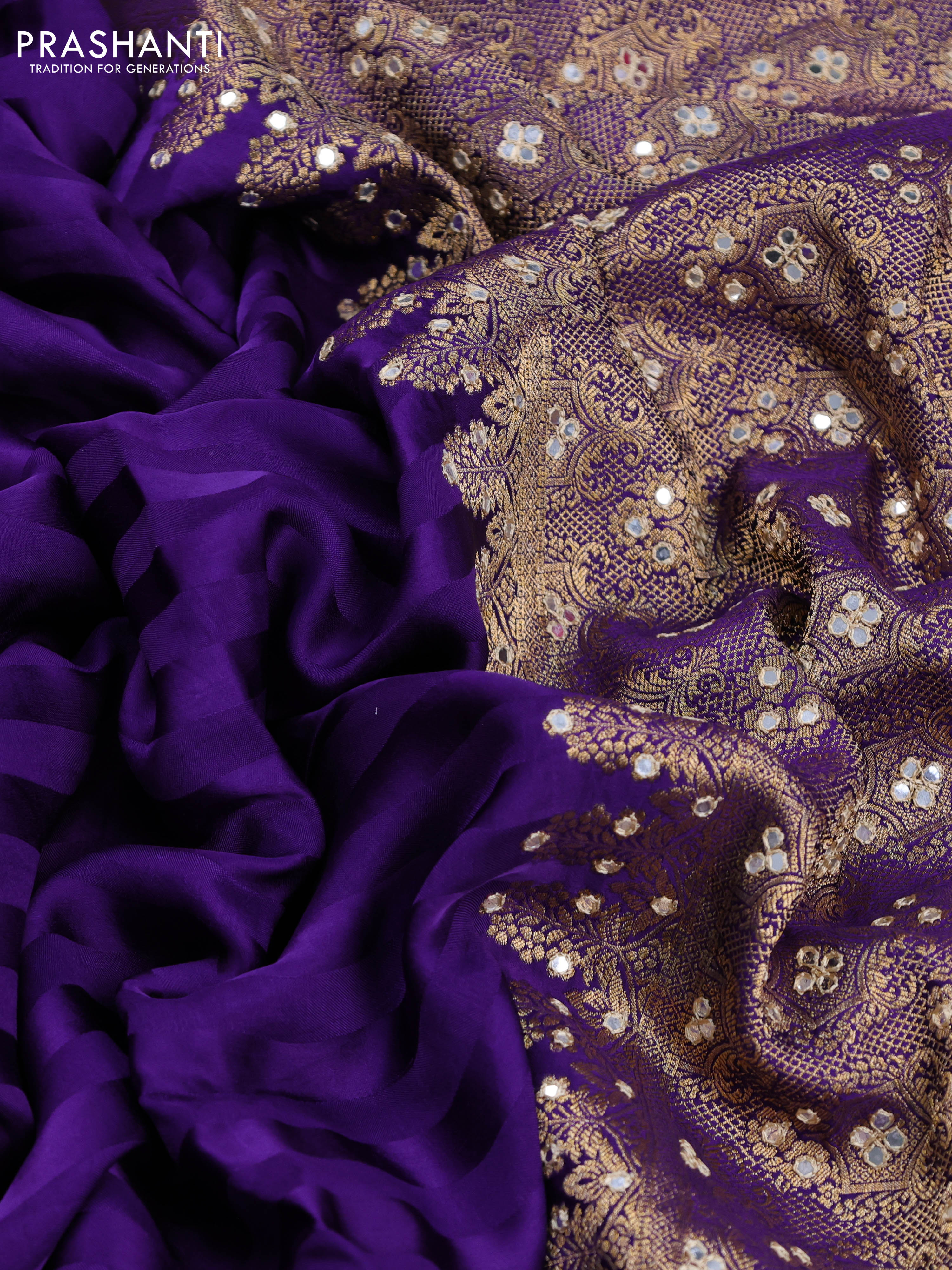 Banarasi crepe saree violet with stripes pattern and mirror work & banarasi style border