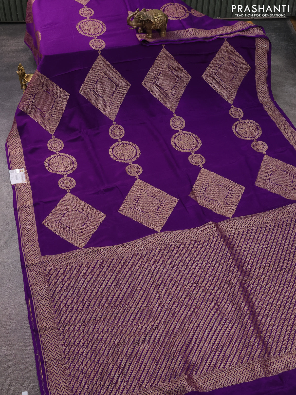 Banarasi crepe saree violet with thread & zari woven buttas and woven border