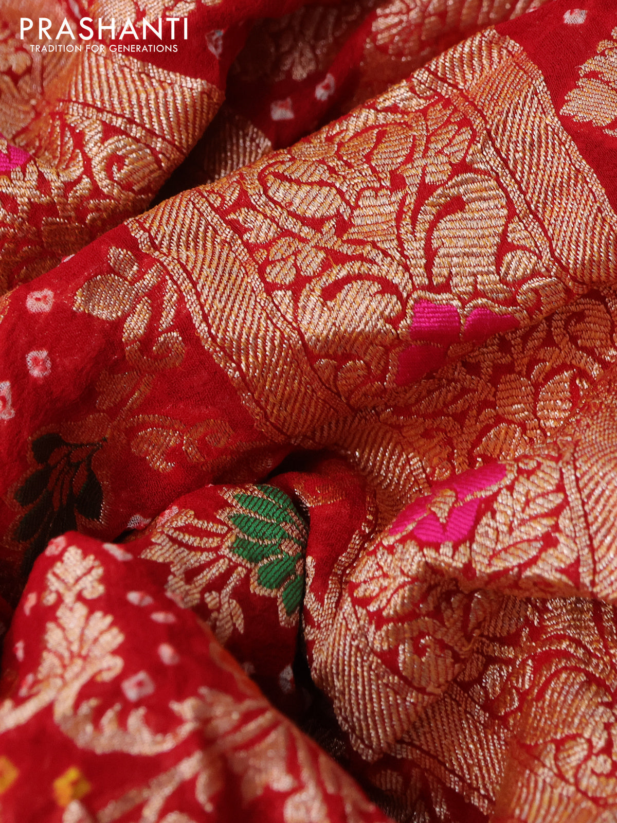 Banarasi georgette saree red with bandhani prints & mina weaves and woven border