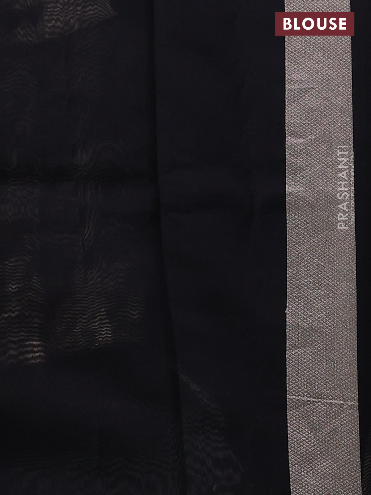 Banarasi katan silk saree black with allover silver zari woven brocade weaves and zari woven butta border