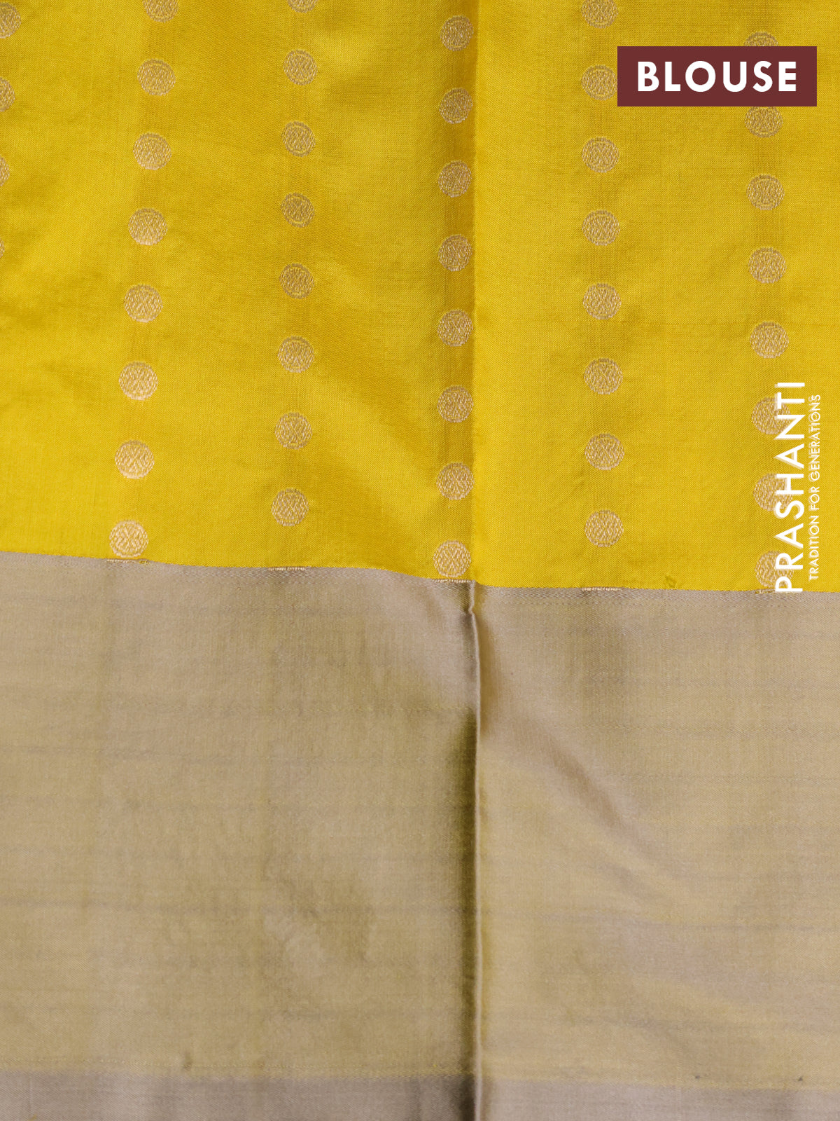 Banarasi katan silk saree yellow and grey shade with zari woven floral buttas and zari woven butta border