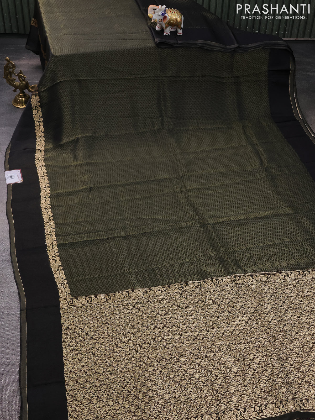 Banarasi mushru silk saree black with allover zari weaves and zari woven border