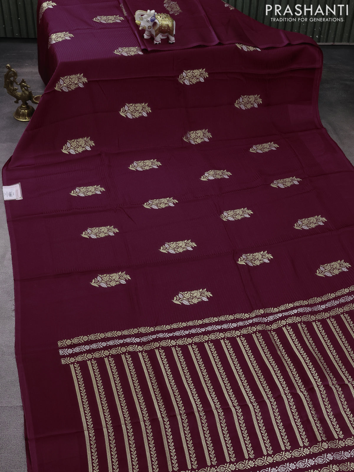 Banarasi mushru silk saree maroon with allover stripes pattern & zari weaves and satin border