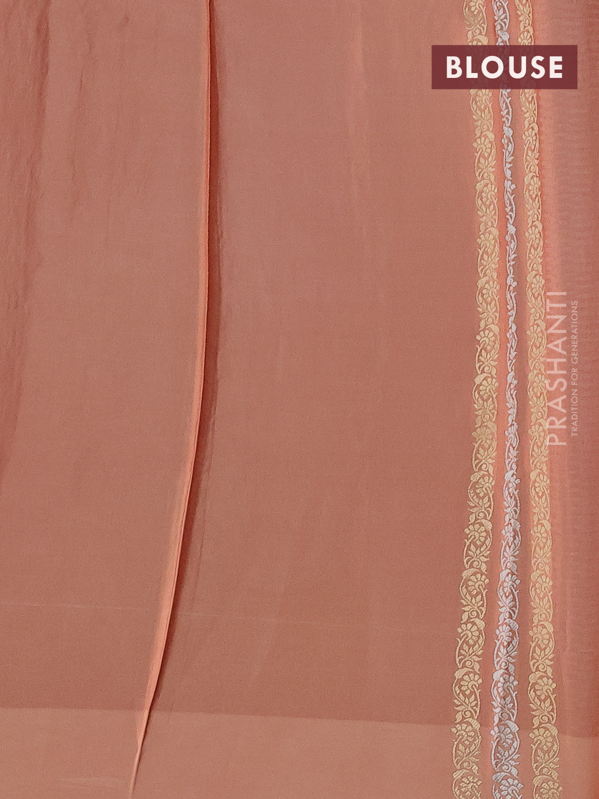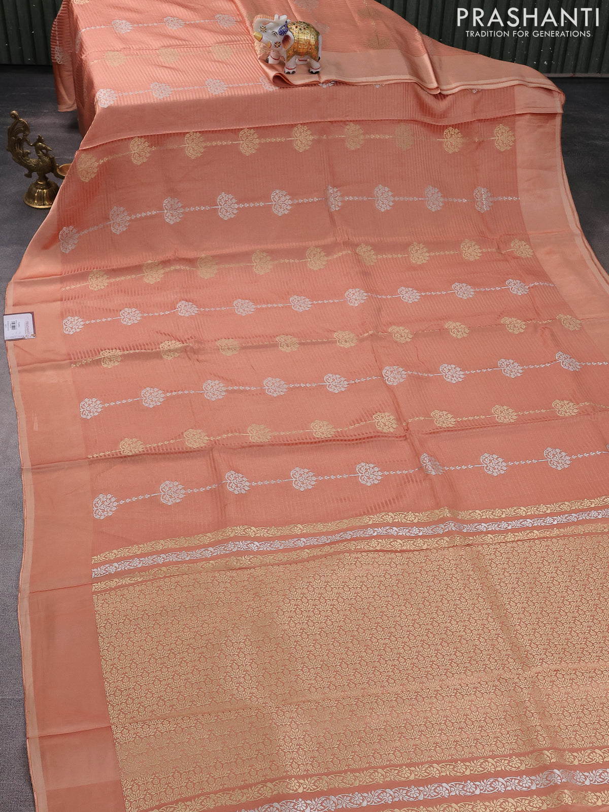 Banarasi mushru silk saree pale orange with allover stripes pattern & zari buttas and satin border