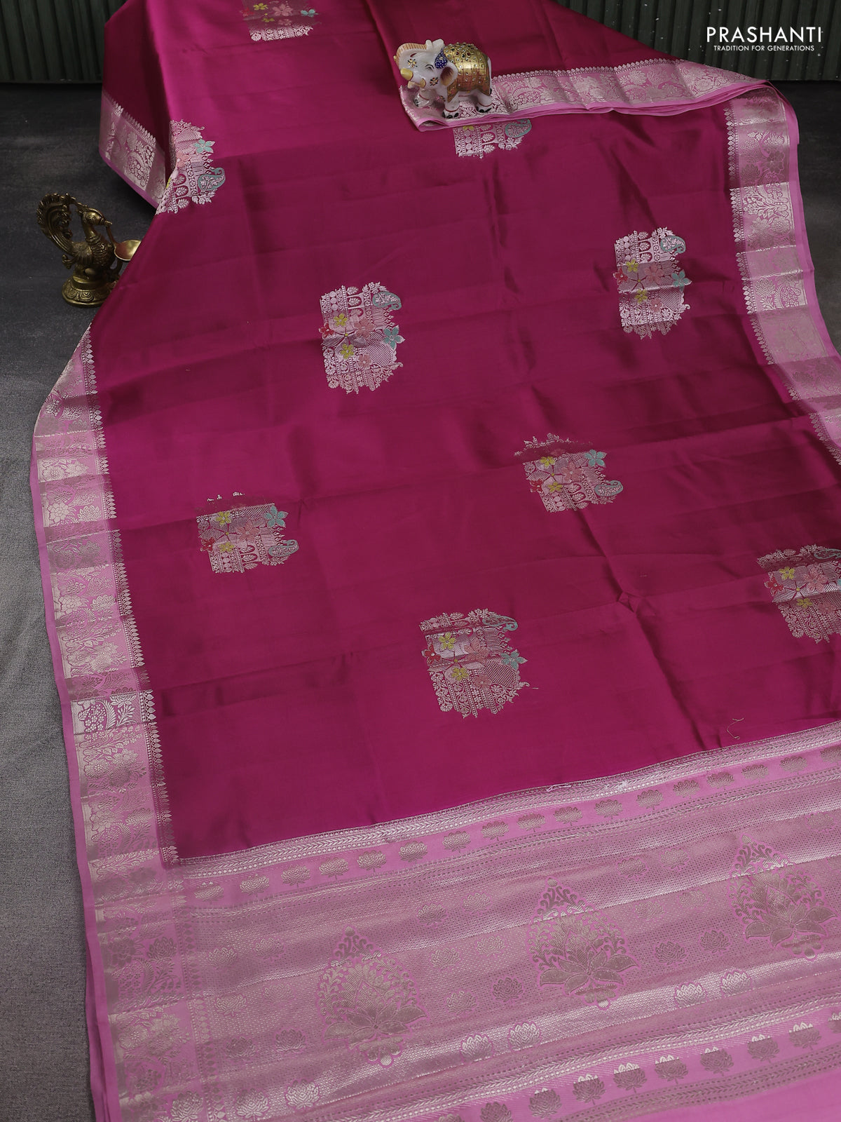 Banarasi poona silk saree dark pink and light pink with thread & zari woven buttas and zari woven border