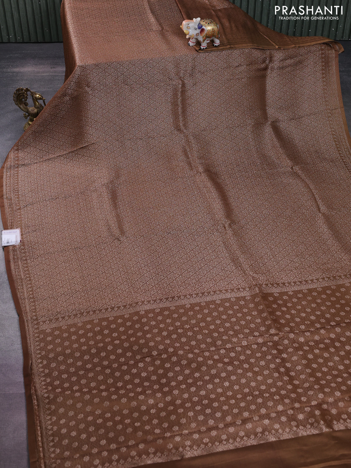 Banarasi semi crepe saree briown with allover thread & zari woven brocade weaves and woven border
