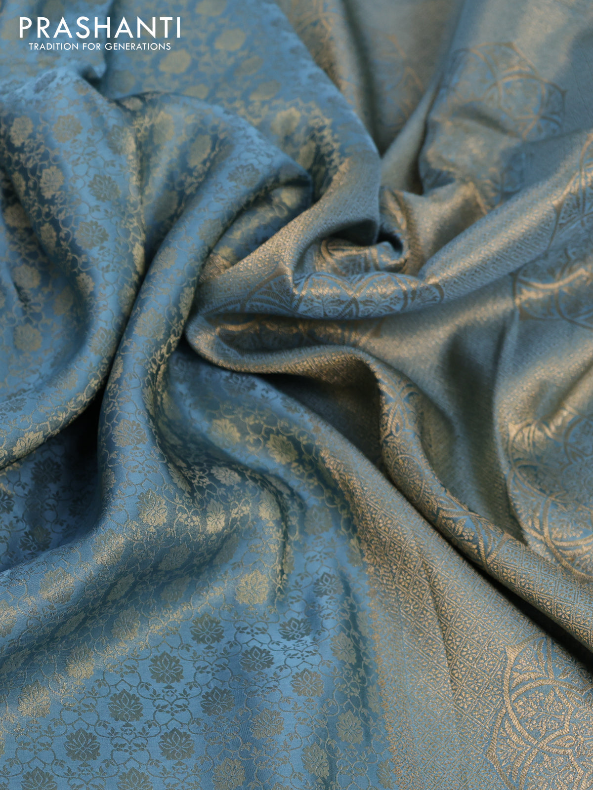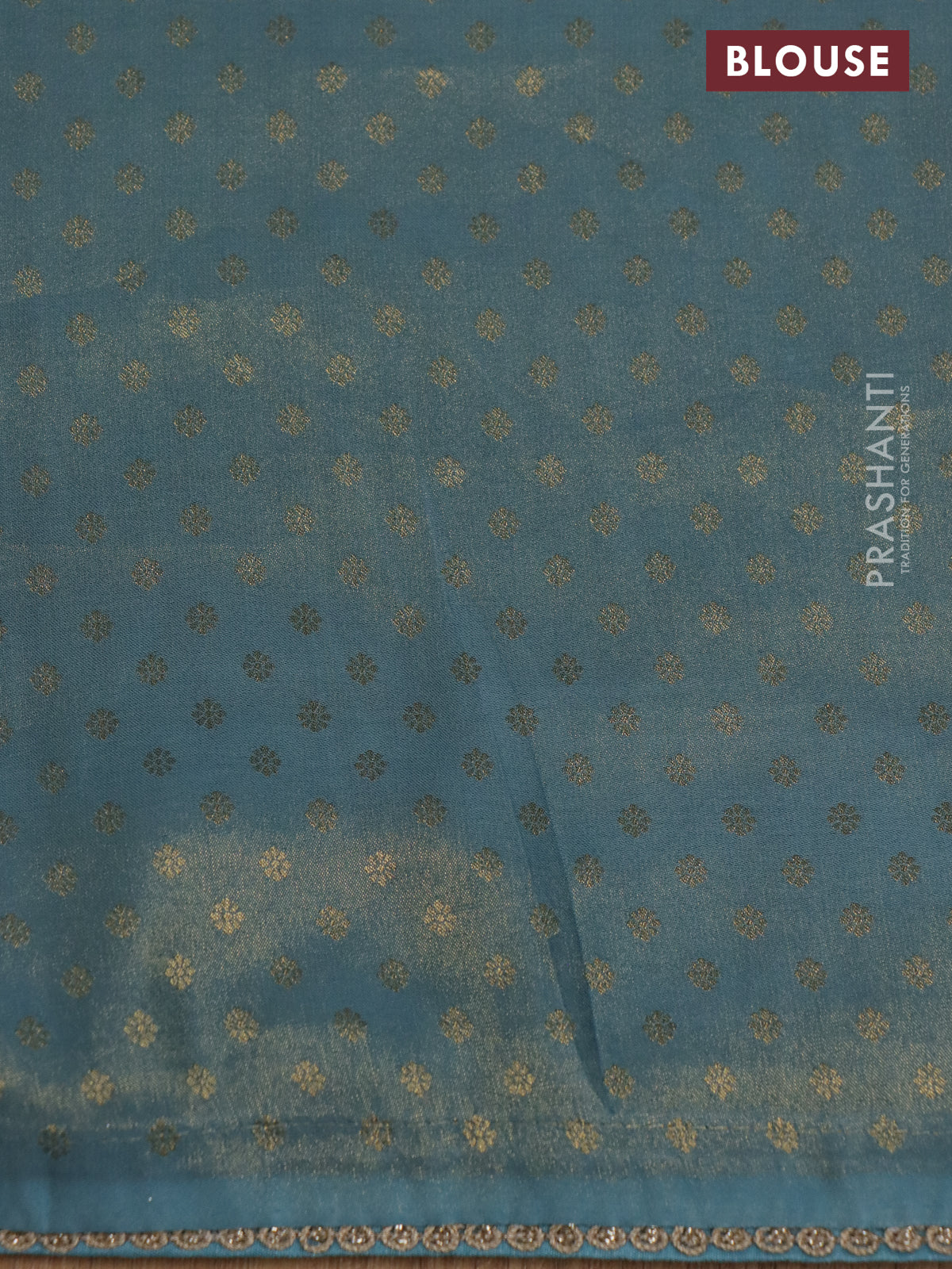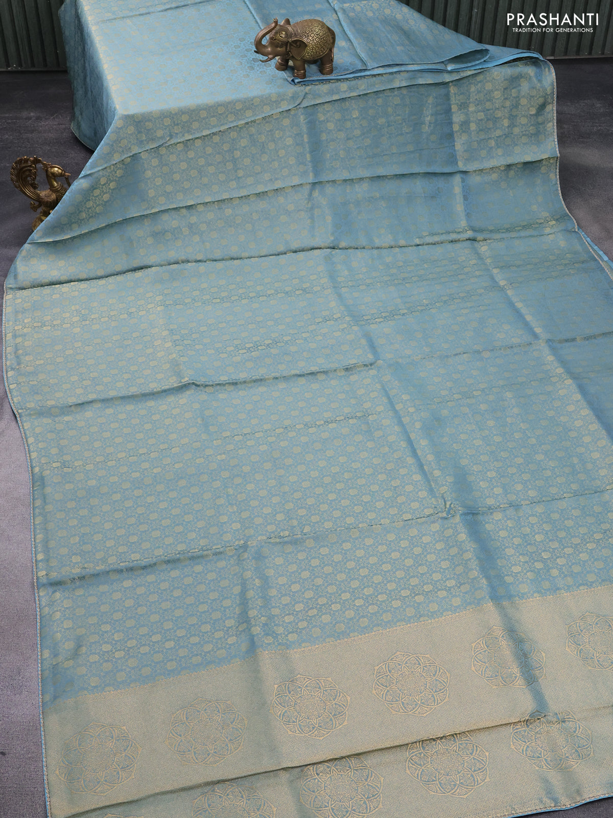 Banarasi semi crepe saree pastel blue shade with allover zari woven brocade weaves and lace work border