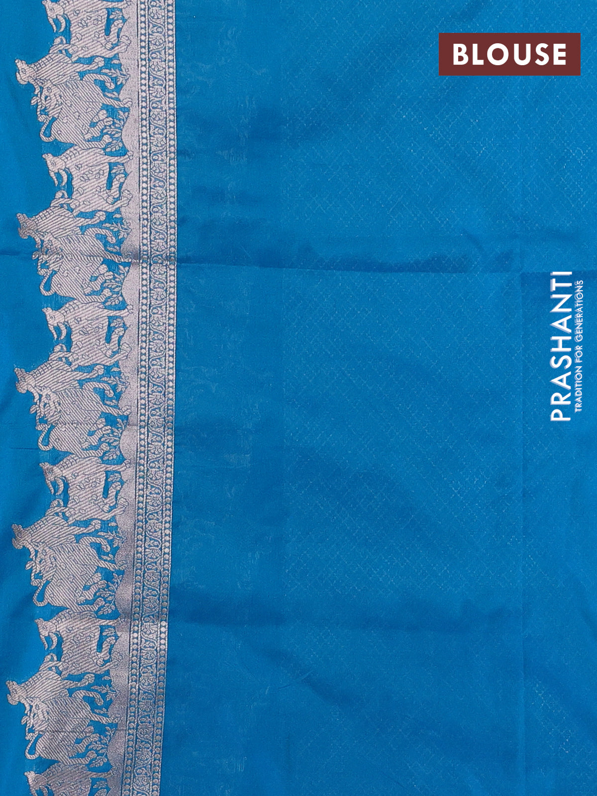 Banarasi semi katan saree dual shade of teal blue with zari woven buttas and zari woven border