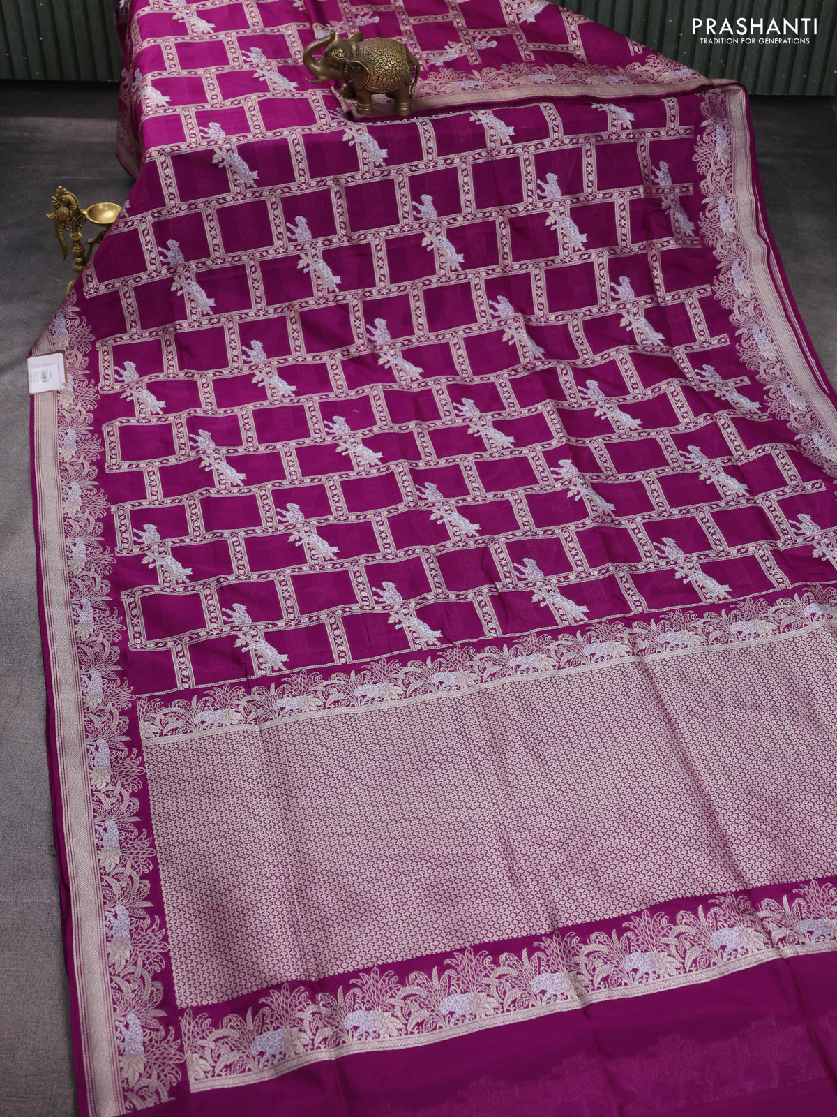 Banarasi semi katan saree purple with allover zari weaves and zari woven border