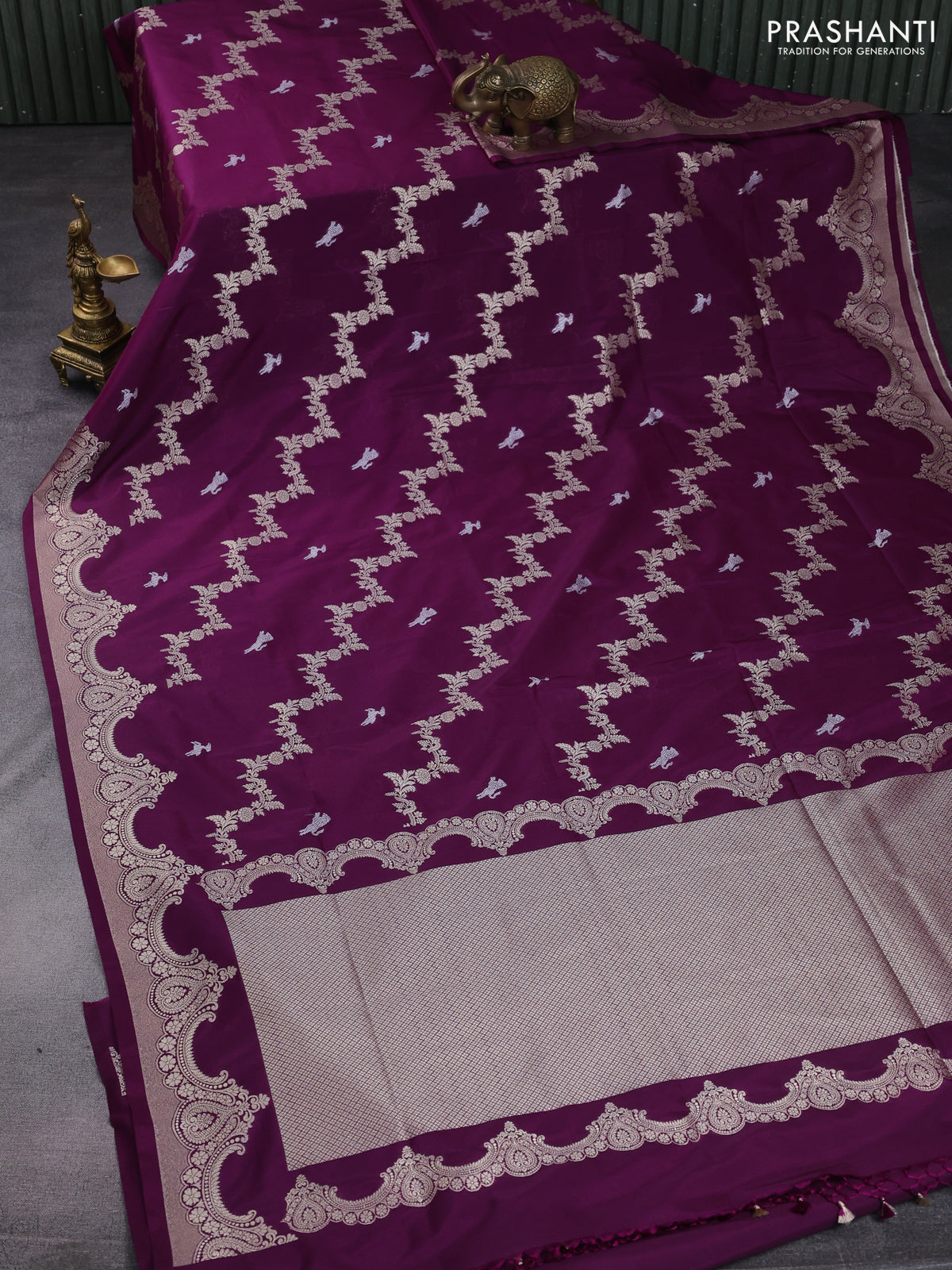 Banarasi semi katan saree purple with silver & gold zari weaves and zari woven border