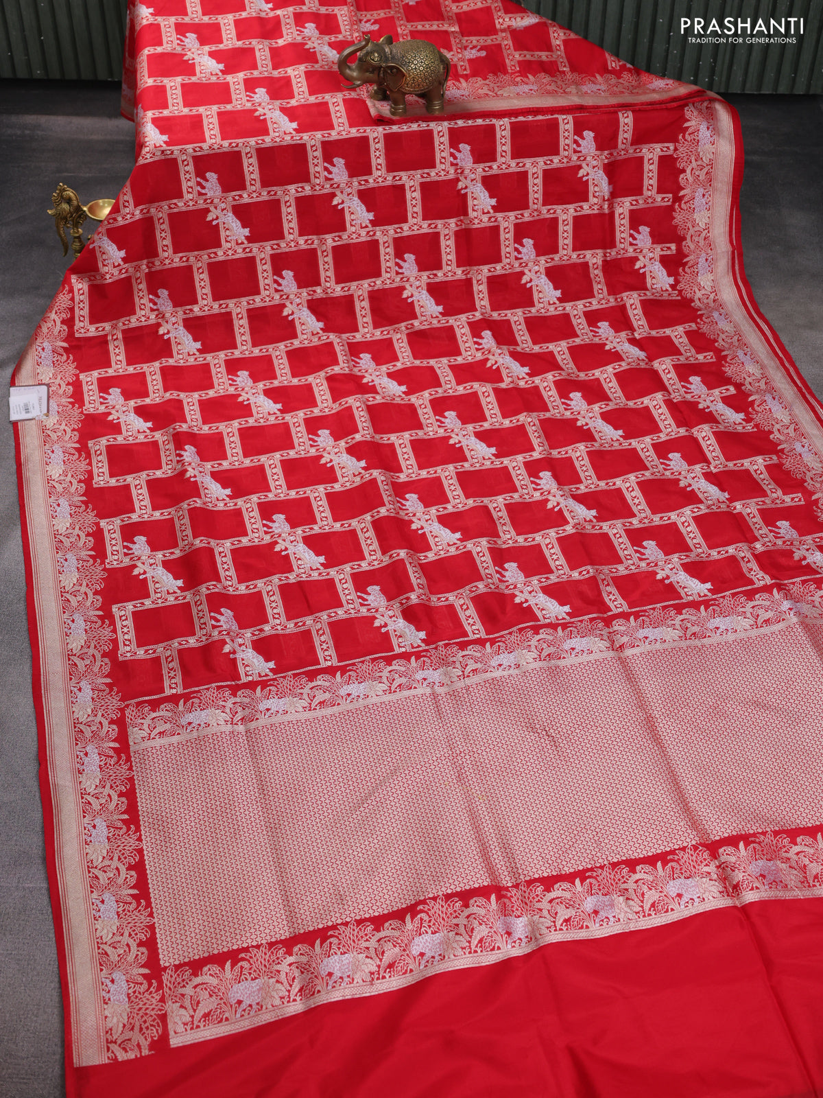 Banarasi semi katan saree red with allover zari weaves and zari woven border