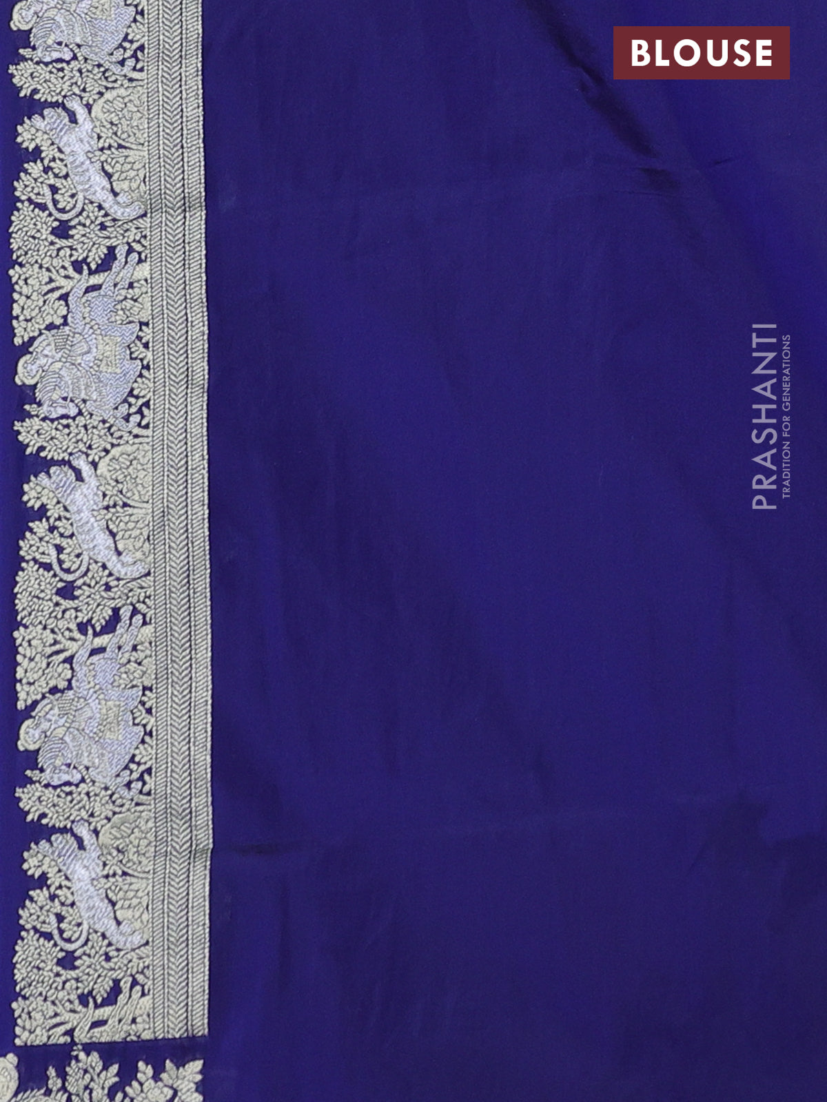 Banarasi semi katan silk saree dark blue with silver zari woven buttas and rich zari woven border