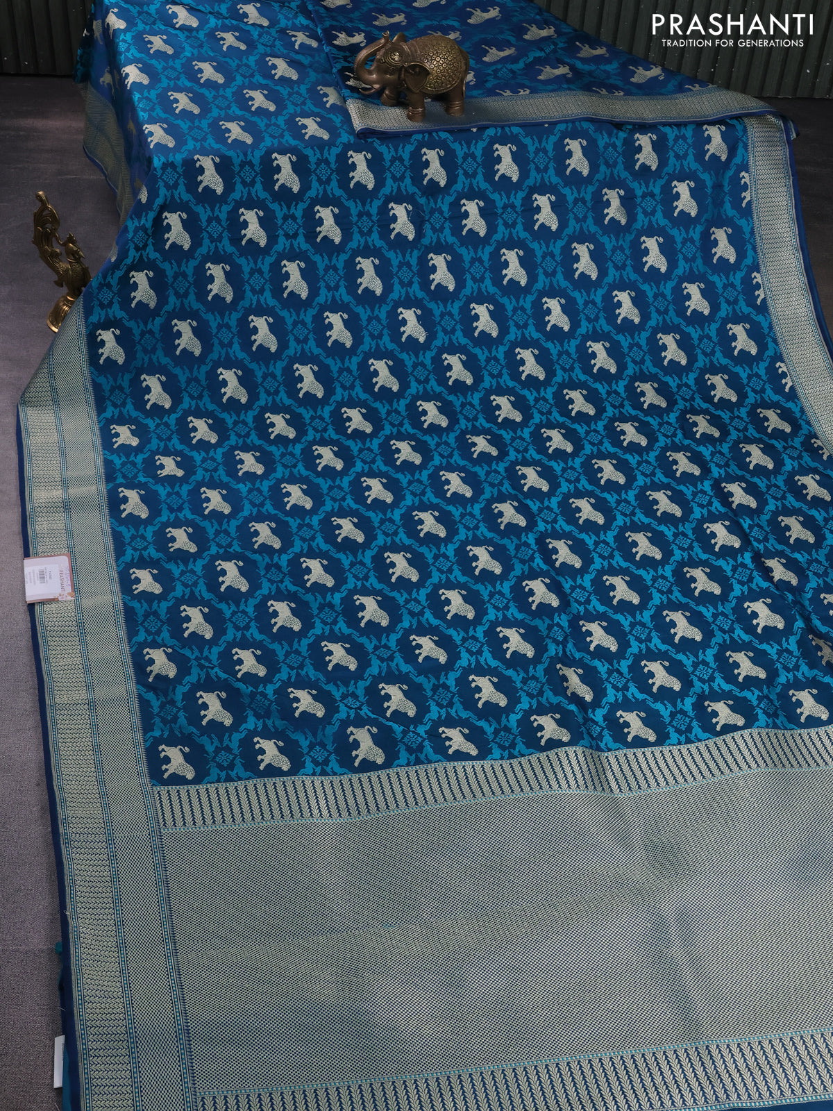 Banarasi semi mushru silk saree dual shade of blue and teal green with allover thread weaves & buttas and zari woven border