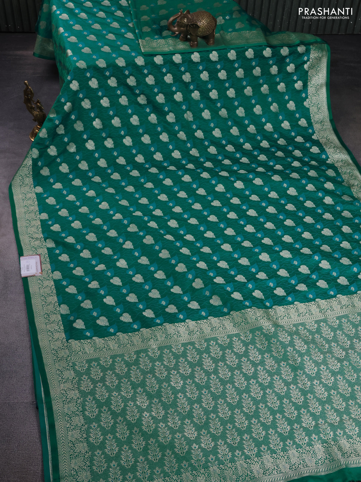 Banarasi semi mushru silk saree teal green with allover thread & zari weaves and zari woven border