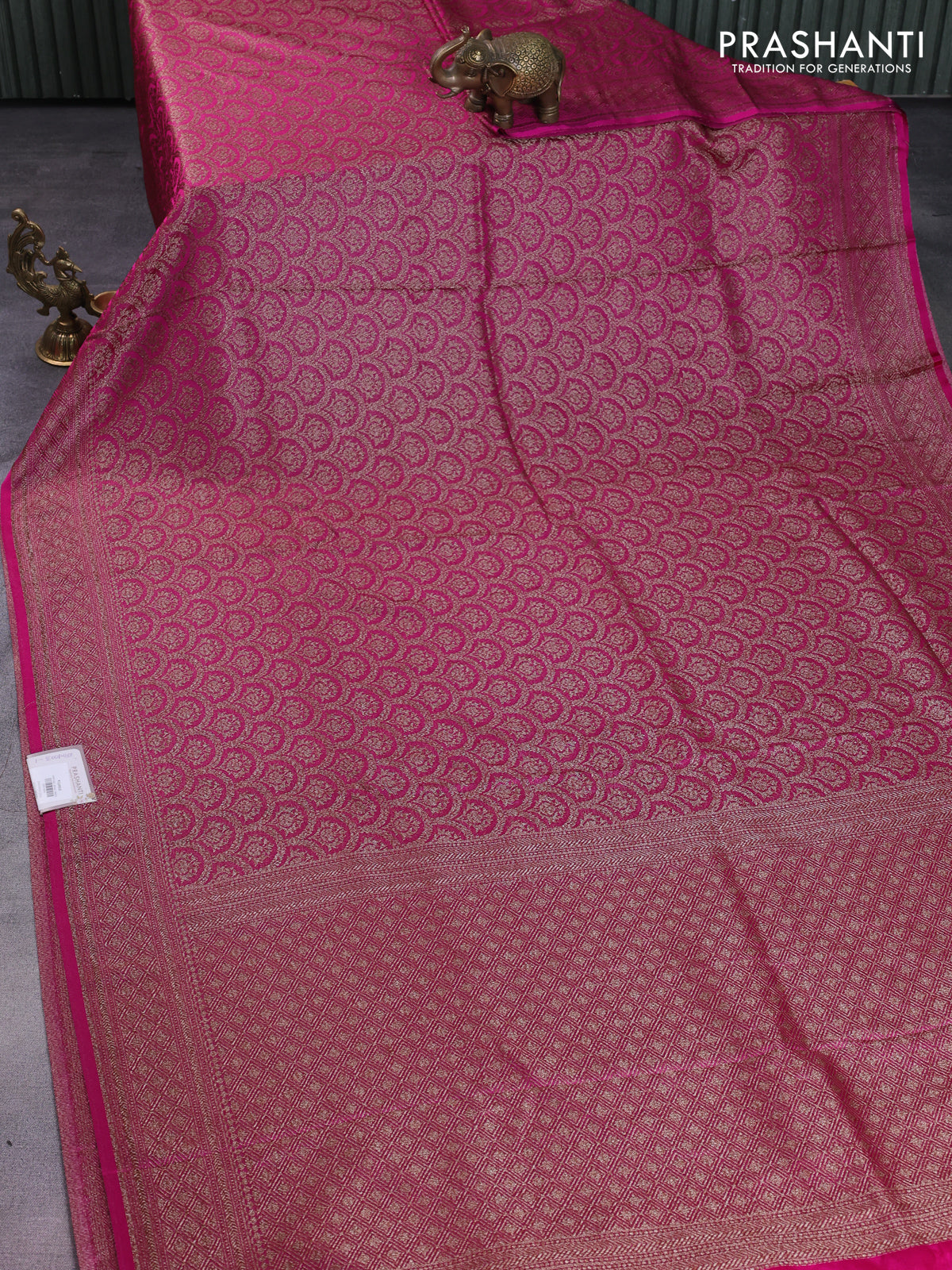Banarasi semi silk saree magenta pink with allover thread & zari weaves and woven border