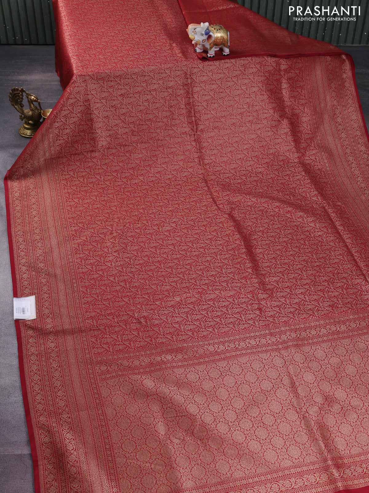 Banarasi semi silk saree maroon with allover thread & zari woven butta weaves and woven border
