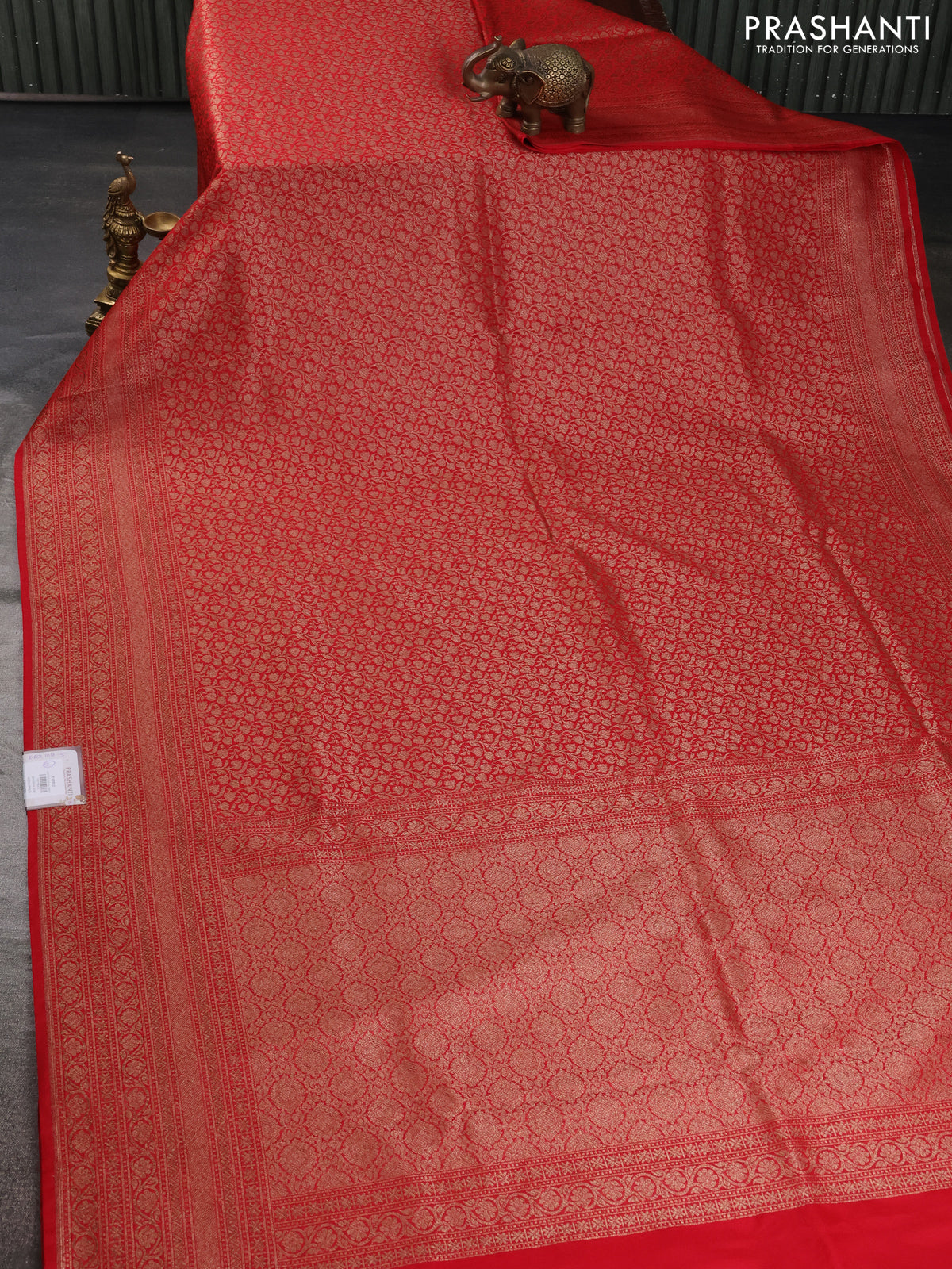 Banarasi semi silk saree red with allover thread & zari weaves and woven border