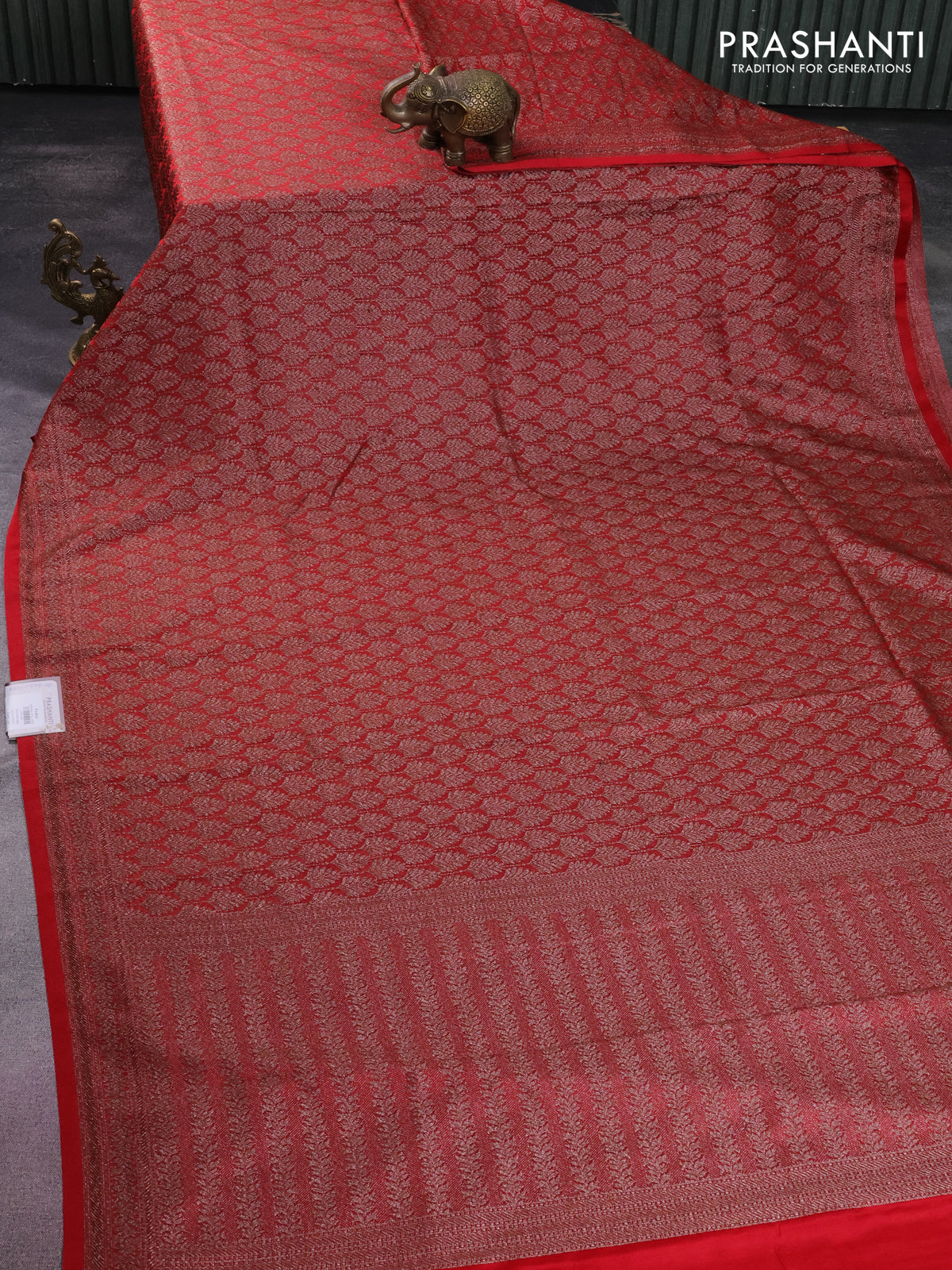 Banarasi semi silk saree red with allover thread & zari weaves and woven border