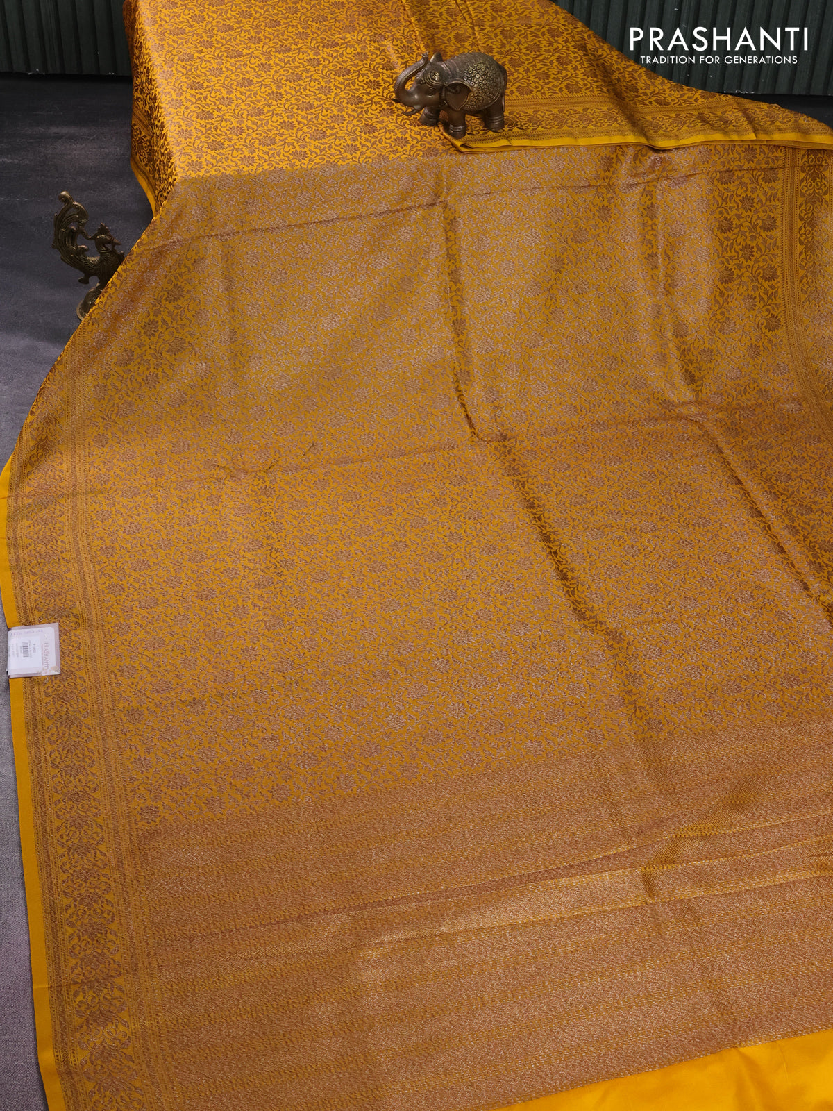 Banarasi semi silk saree yellow with allover thread & zari woven butta weaves and woven border