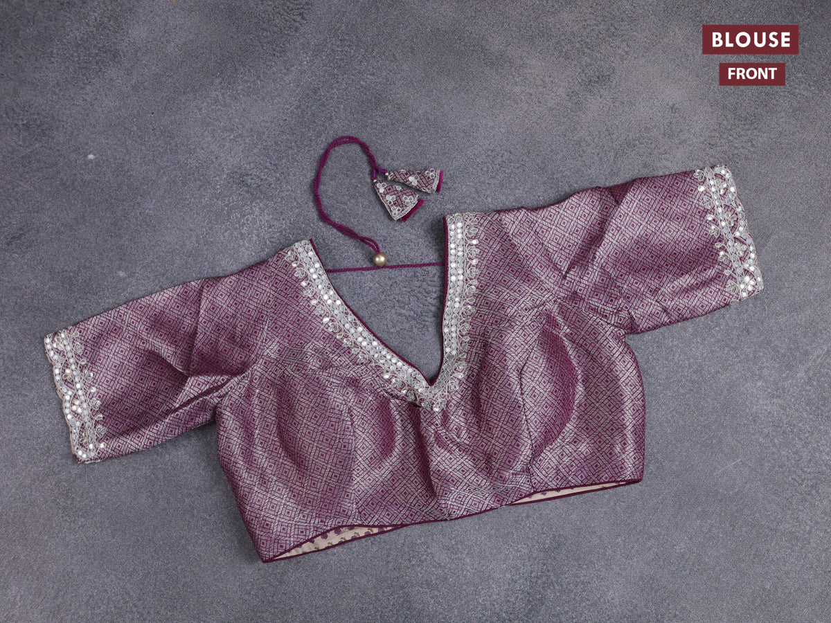 Banarasi silk saree purple with thread & zari woven floral buttas and gotapatti work pallu