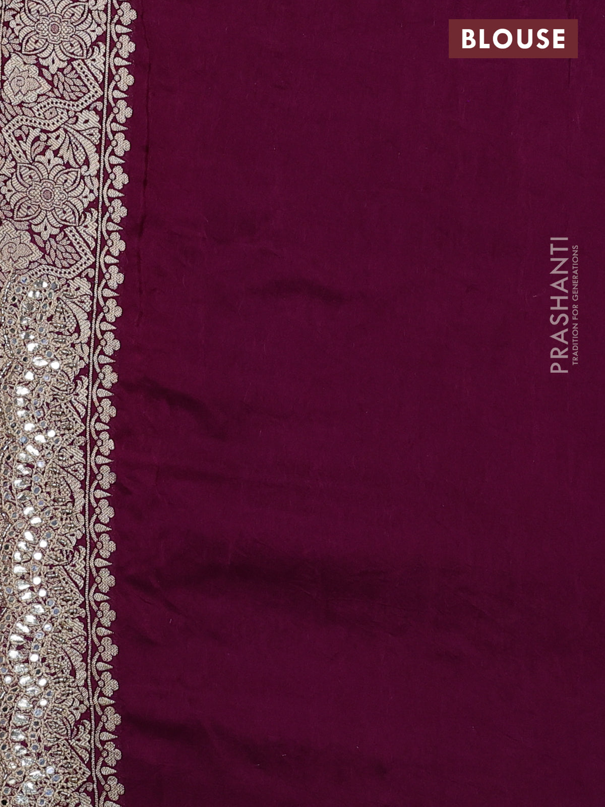 Banarasi silk saree wine shade with allover zari woven jaal weaves and gotapatti work border