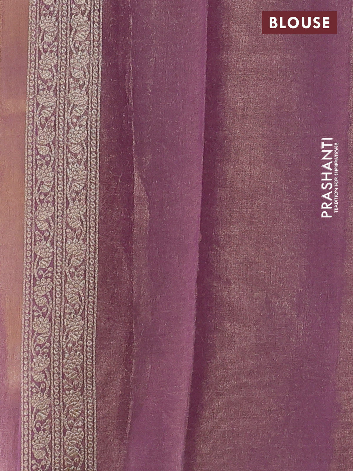 Banarasi tissue silk cotton saree mustard yellow and mauve pink with allover thread & zari woven butta weaves and woven border