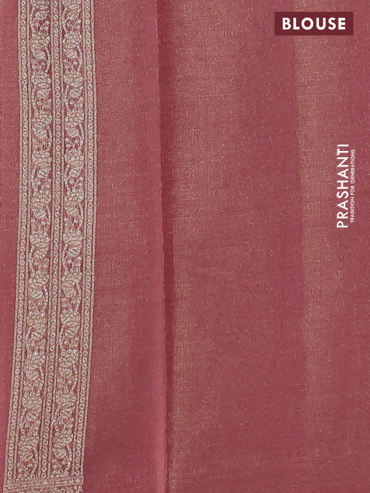 Banarasi tissue silk cotton saree sandal and pastel maroon with allover thread & zari woven butta weaves and woven border