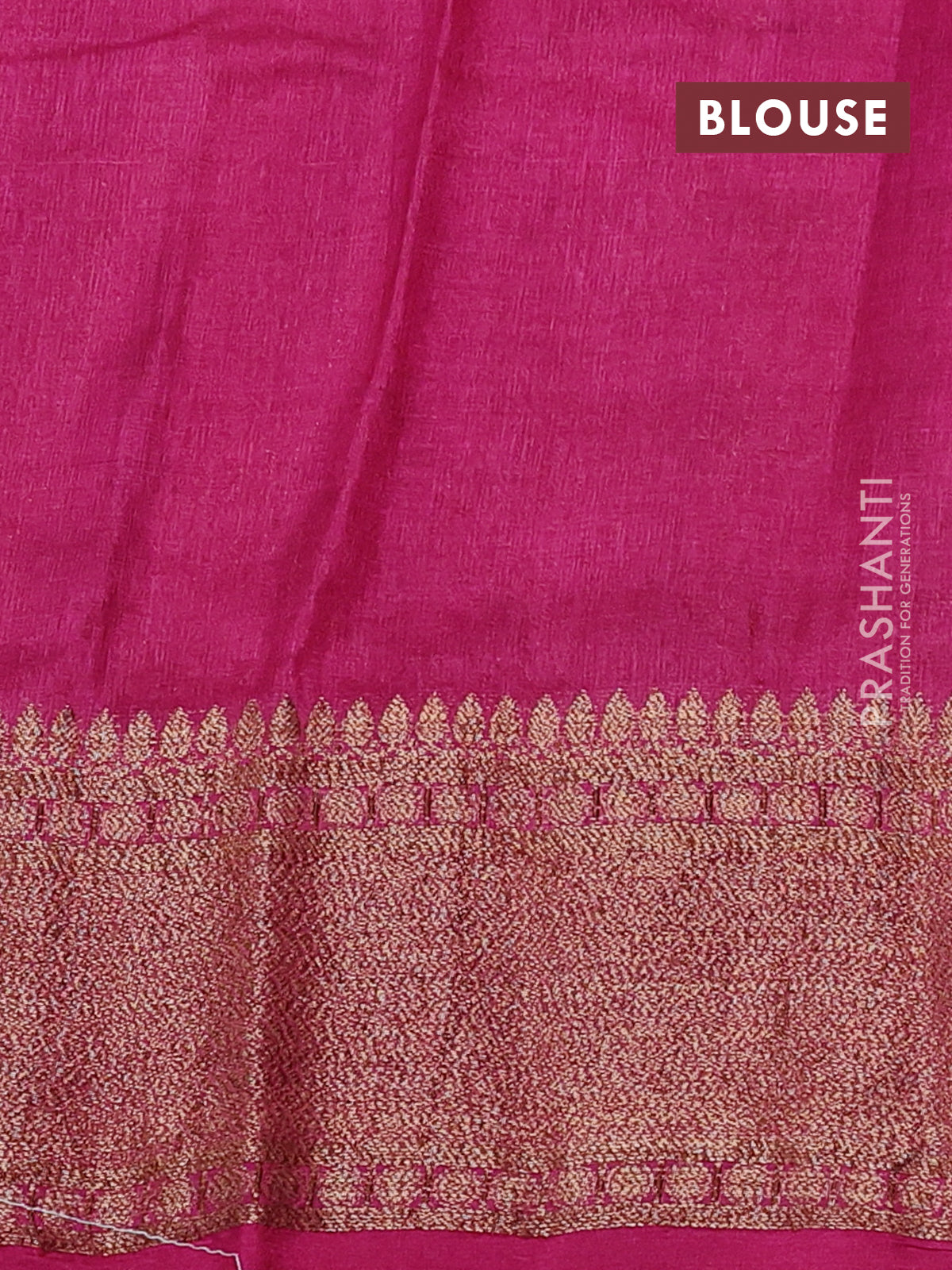 Banarasi tussar silk saree peacock blue and magenta pink with thread & zari woven buttas and woven border