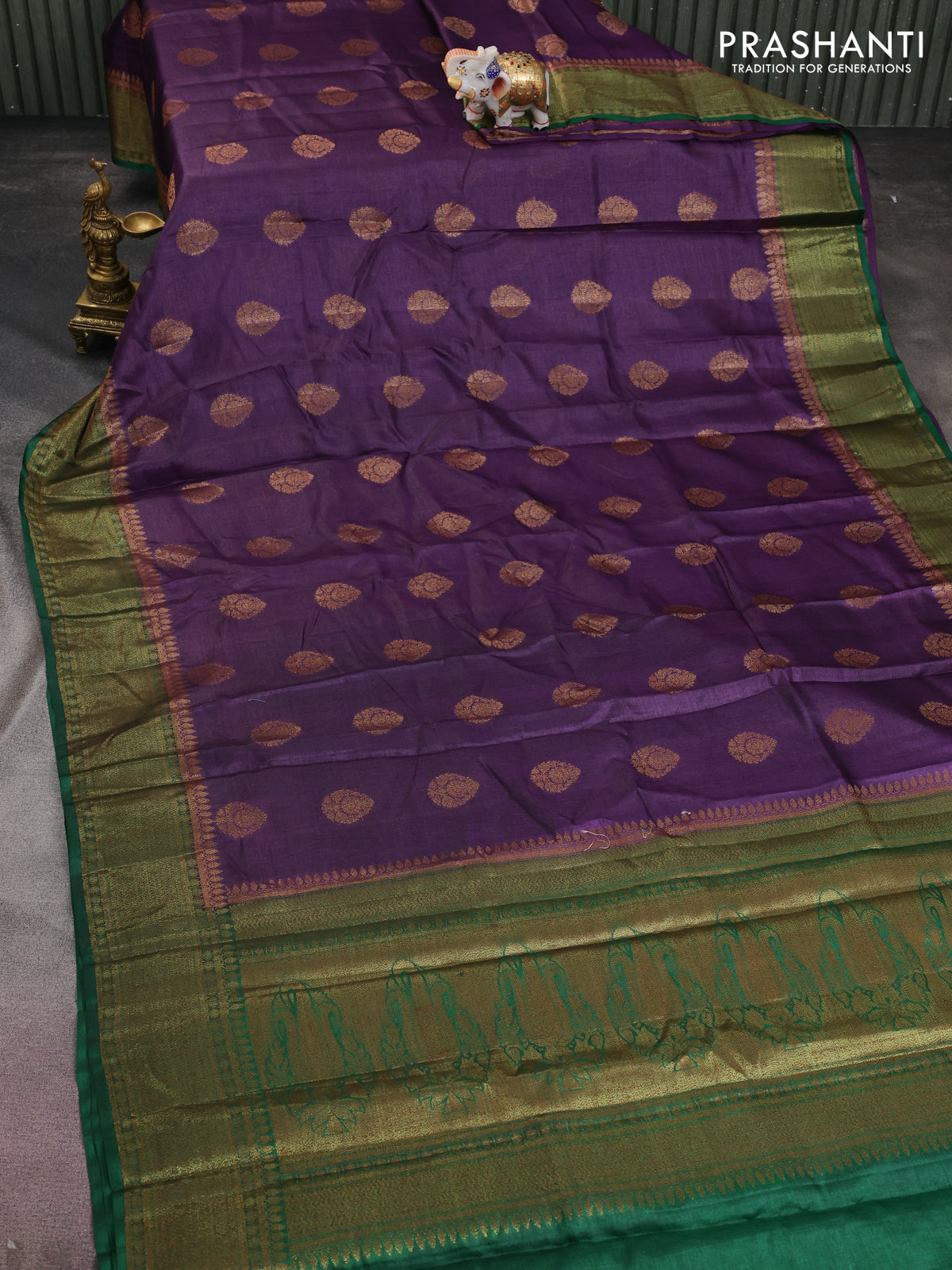 Banarasi tussar silk saree purple and green with thread & zari woven buttas and woven border