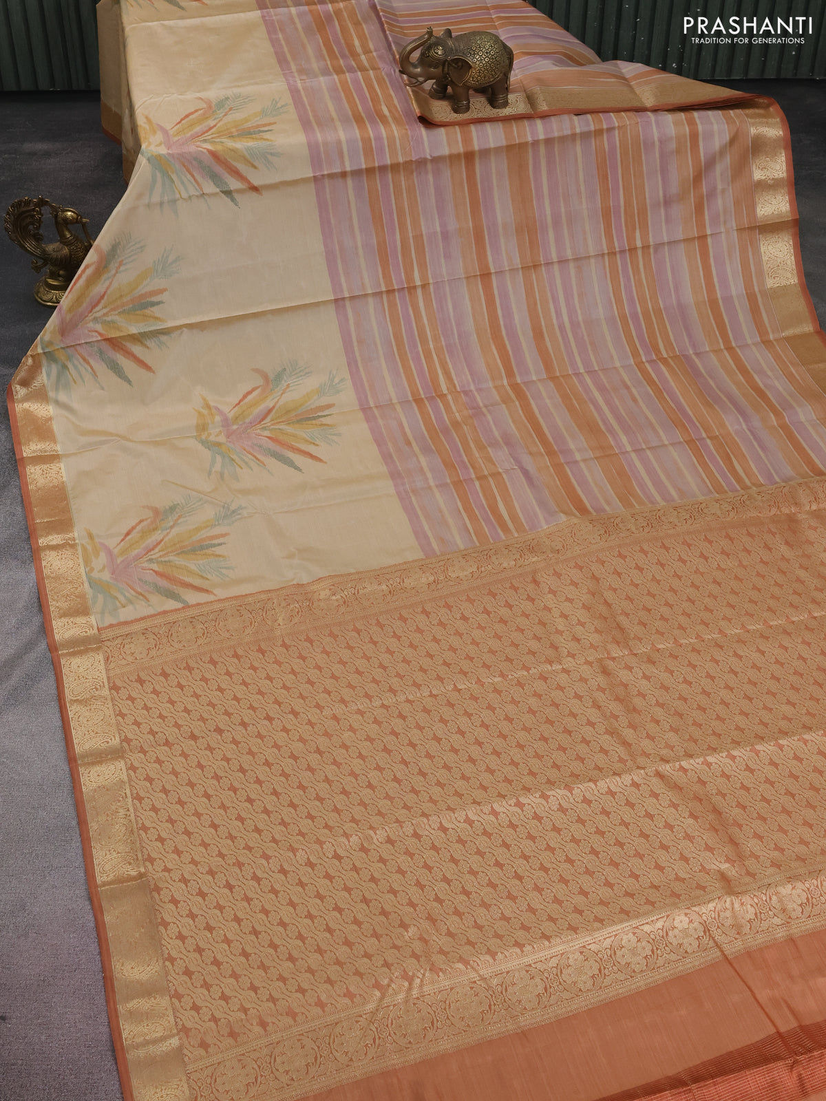 Bangalori semi silk saree beige and rust shade with allover ikat weaves and zari woven border