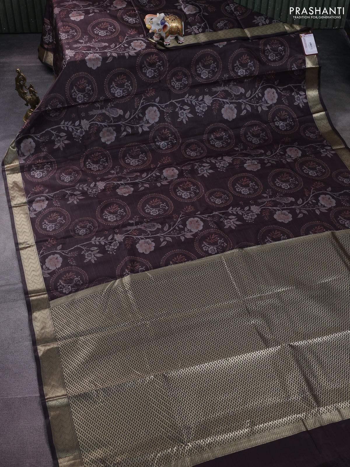 Bangalori semi silk saree dark brown with allover ikat weaves and zari woven border